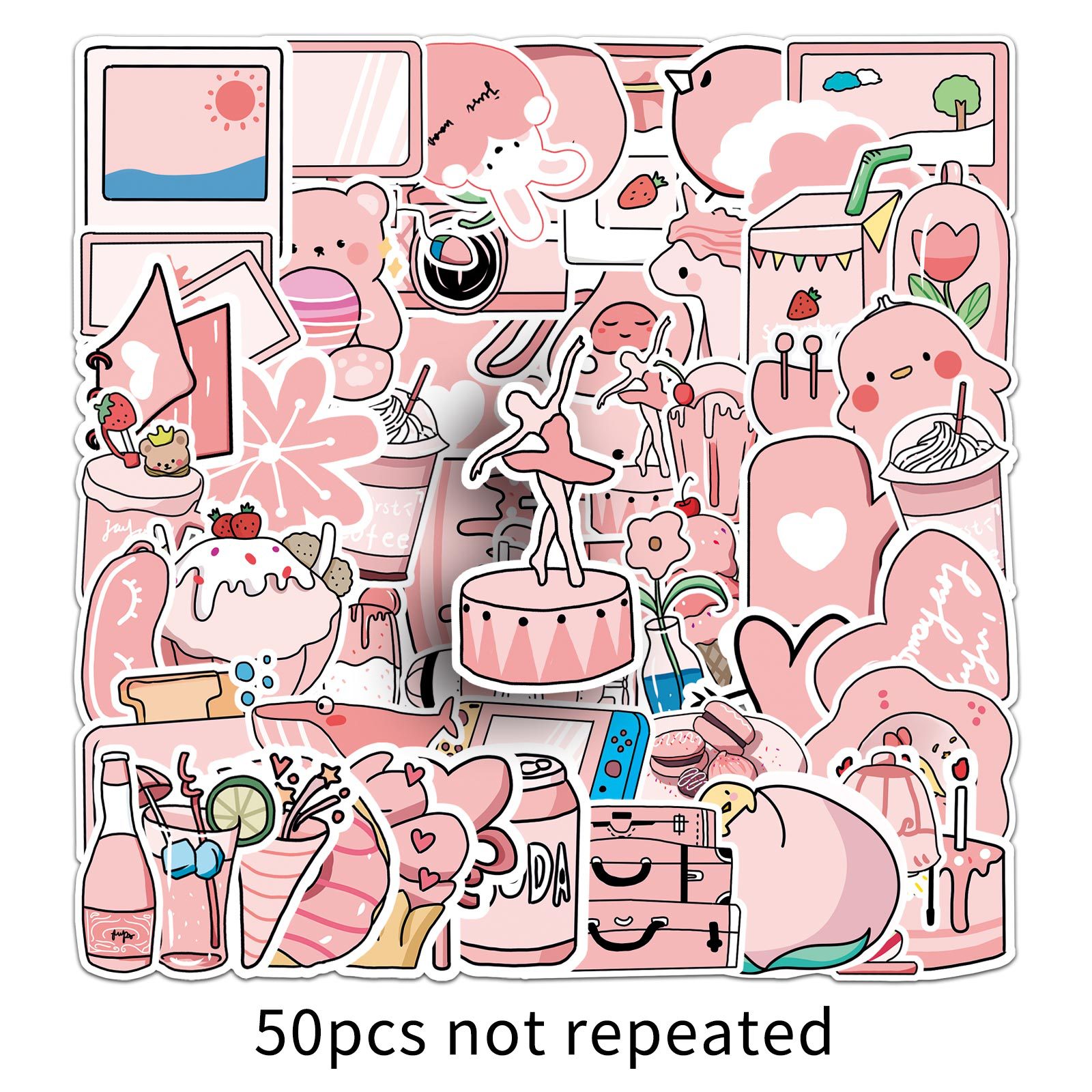 50 원래 핑크 소녀 스티커 원래 비 침해 만화 귀여운 낙서 방수 장식 국경 스티커스토어 가기