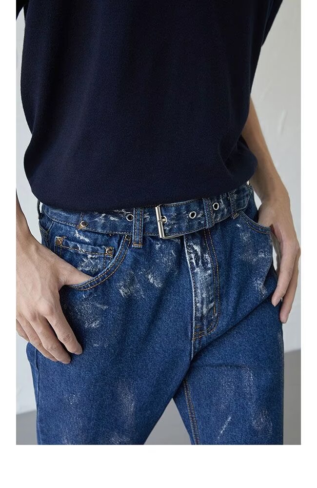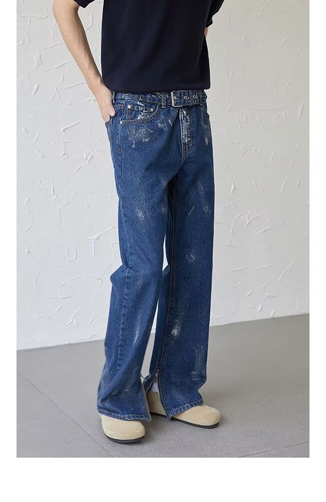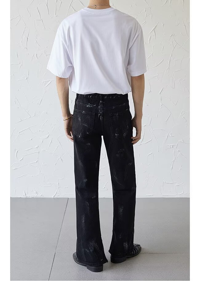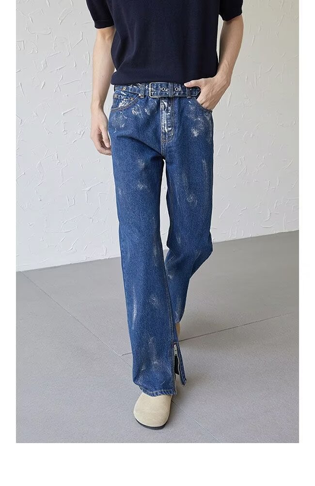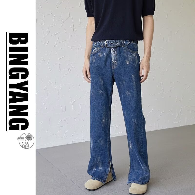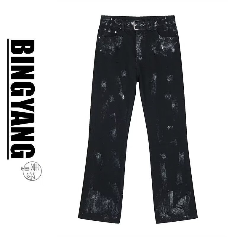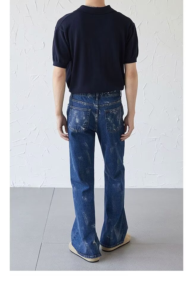 아메리칸 스트리트 세탁 청바지 남성 봄과 가을 스트레이트 느슨한 유럽과 미국의 하이 스트리트 바이브 스타일 긴 바지스토어 가기