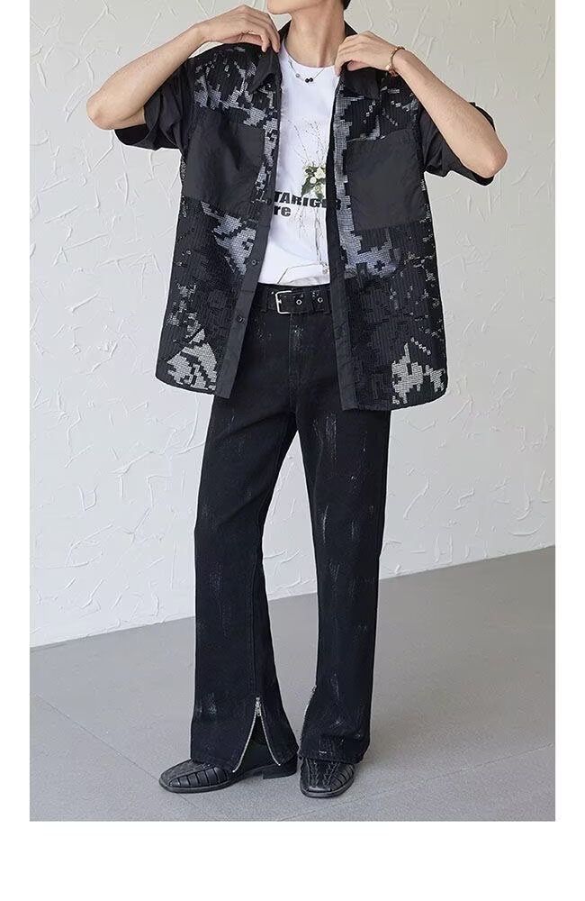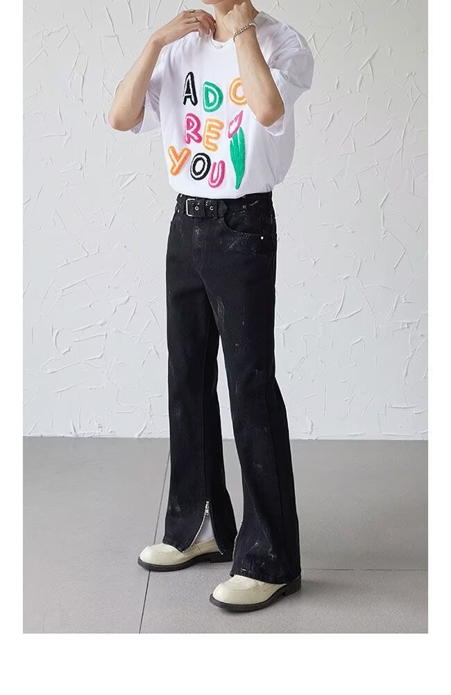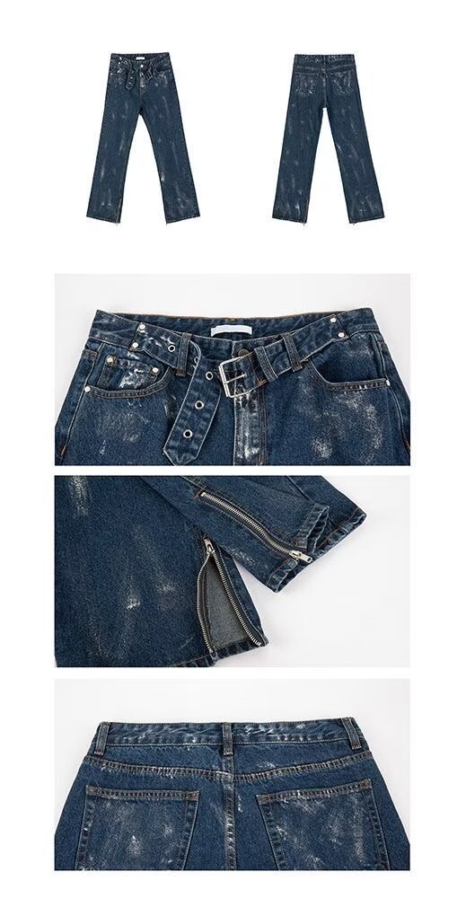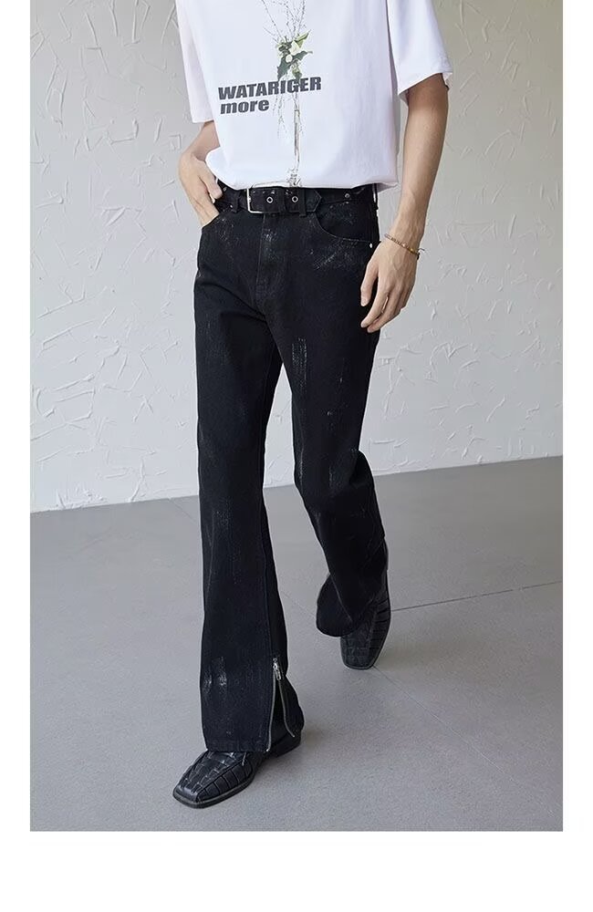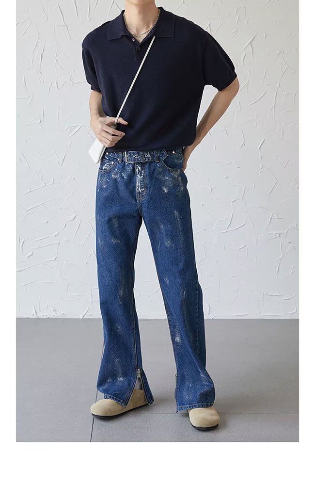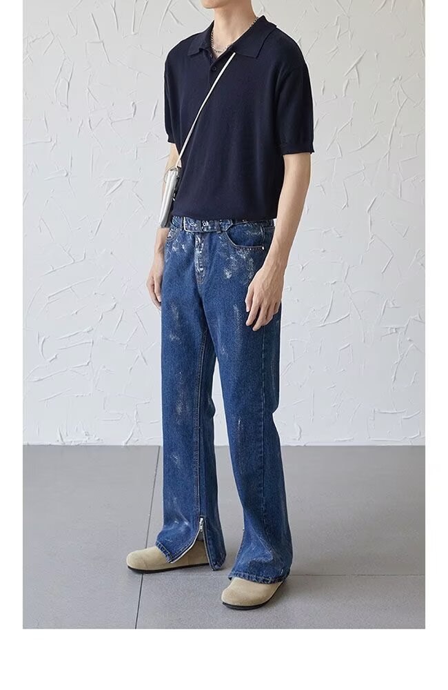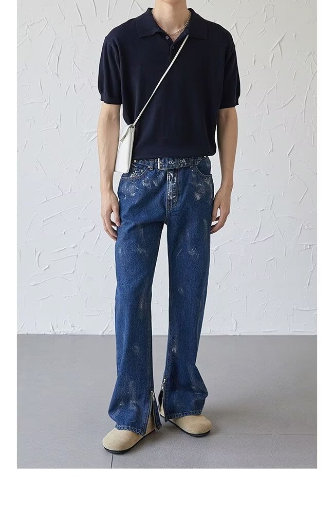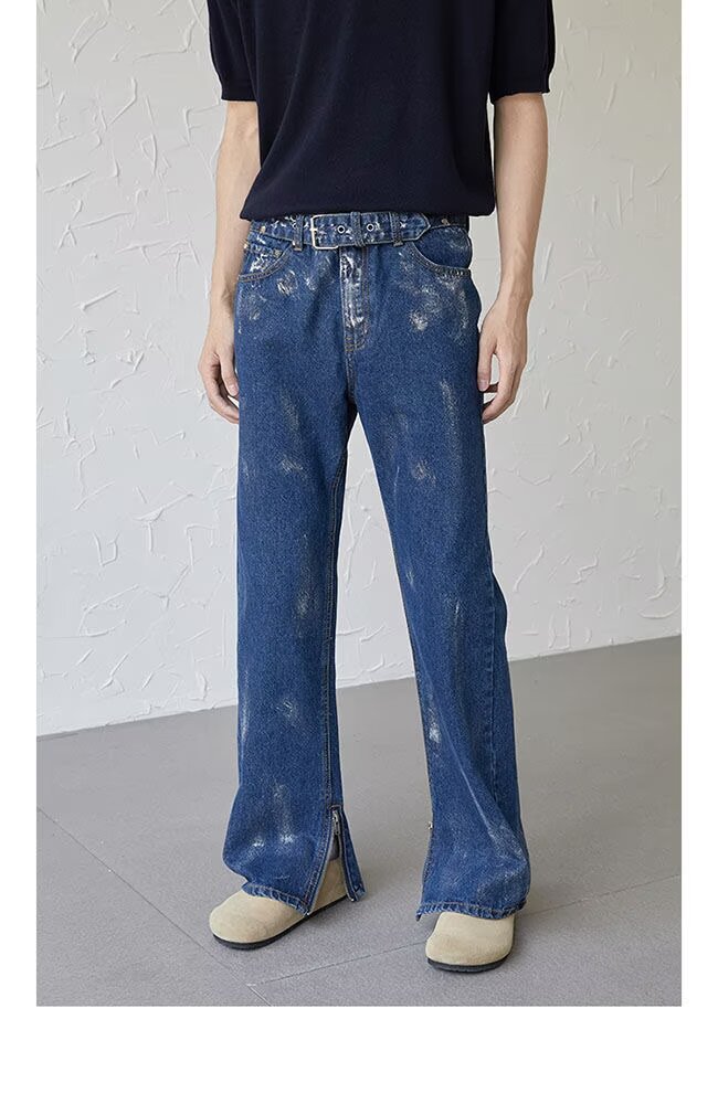 아메리칸 스트리트 세탁 청바지 남성 봄과 가을 스트레이트 느슨한 유럽과 미국의 하이 스트리트 바이브 스타일 긴 바지스토어 가기