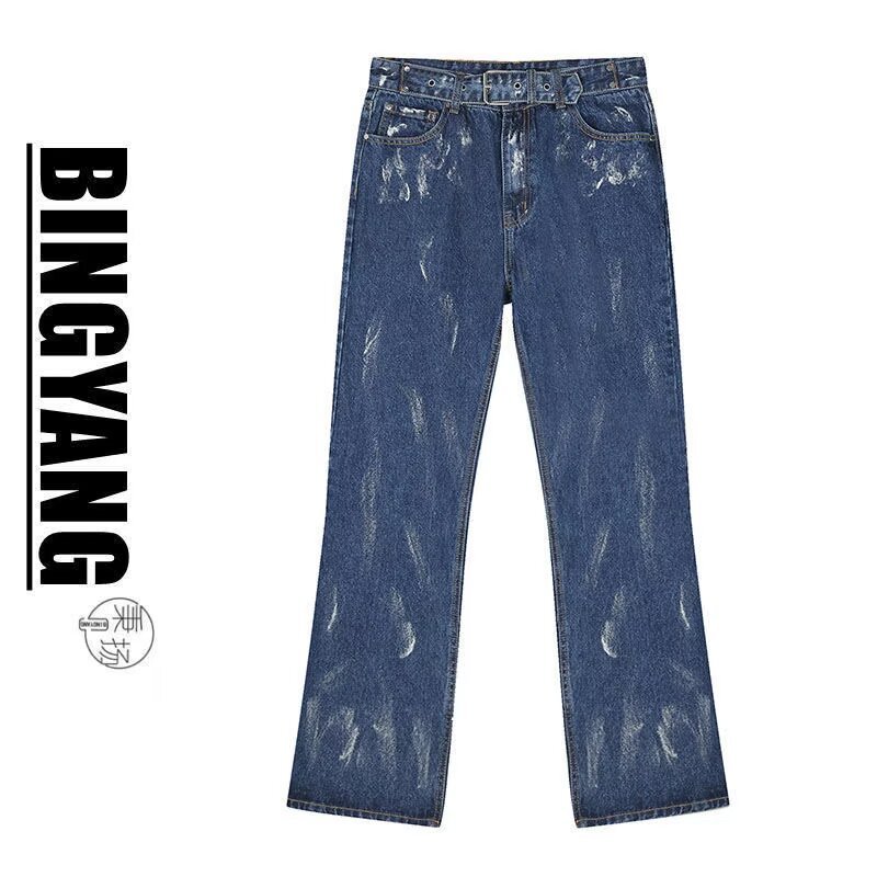 아메리칸 스트리트 세탁 청바지 남성 봄과 가을 스트레이트 느슨한 유럽과 미국의 하이 스트리트 바이브 스타일 긴 바지
