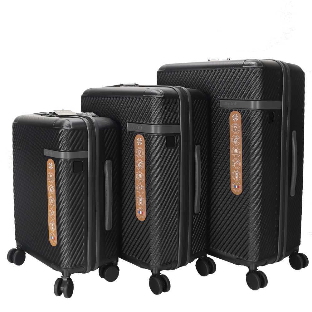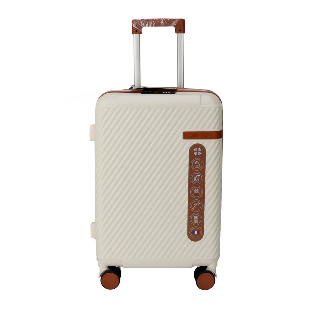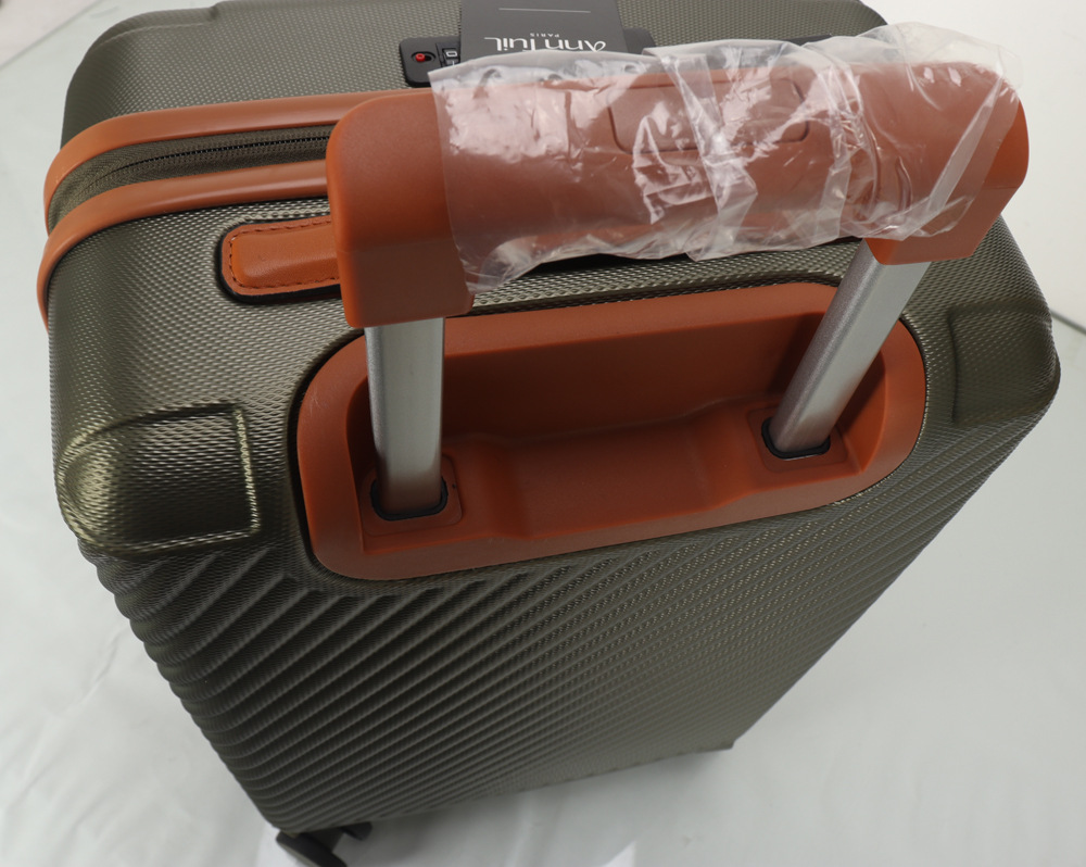This style is ready to ship, only welcome bulk order. Below all pictures are from real suitcases, please notice the brand on the suitcase, it is a Franch brand, we cannot remove the logo. It is discount price, no negociate. Total 5 colors in stock, size 20", 24" and 28".