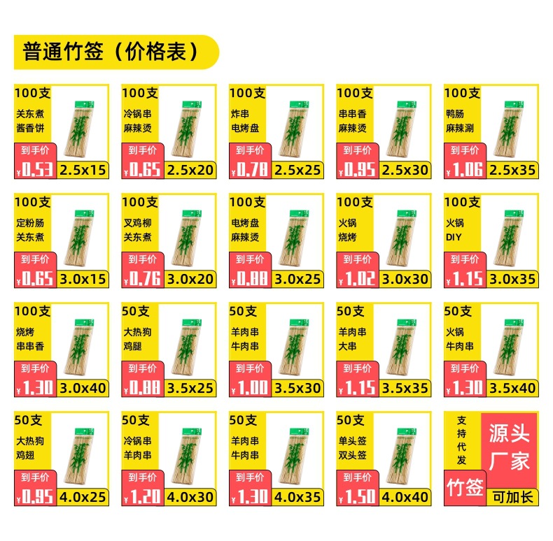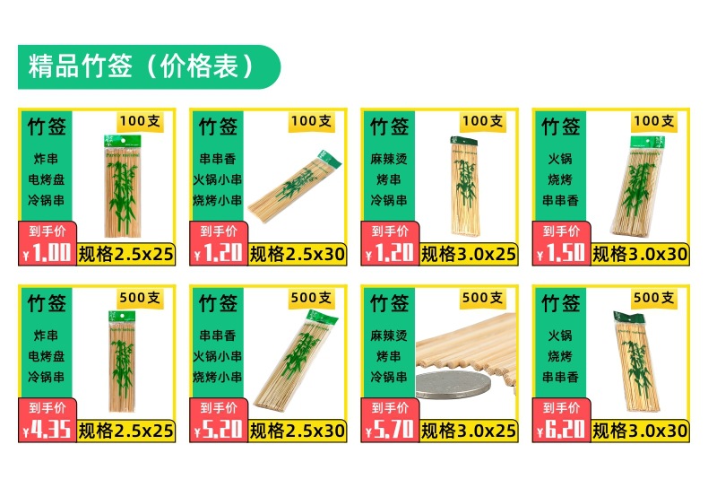 一个产品,29个SKU,一次性竹签:2包起批价格:【可混批】
