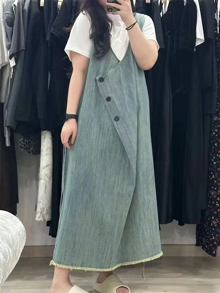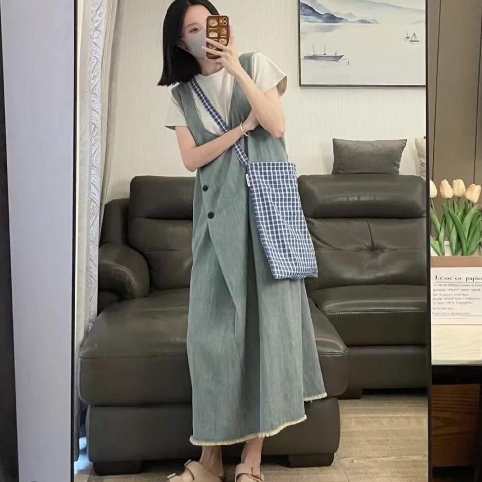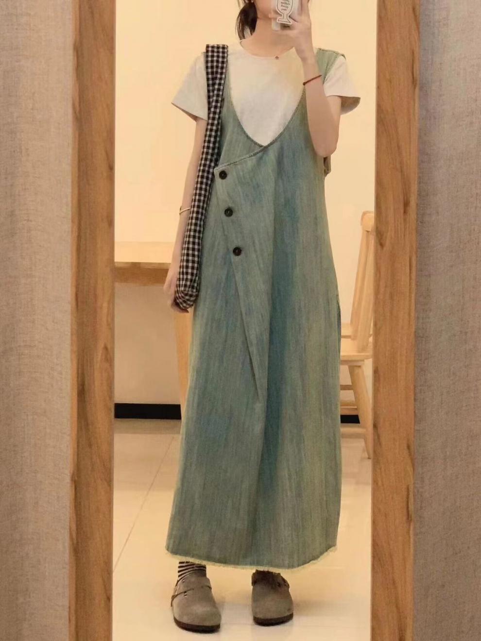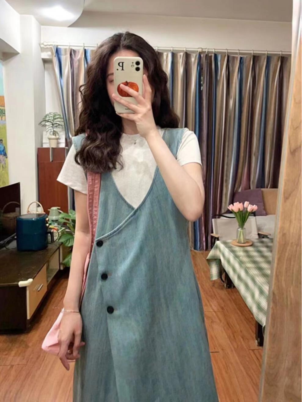 빈티지 블루 기타/기타 스커트 여성 여름 새로운 하이 엔드 센스 러스트 슬림 핏 원피스스토어 가기