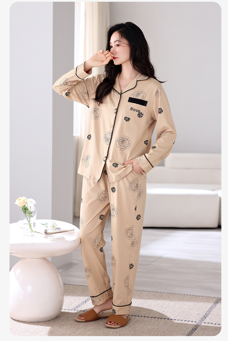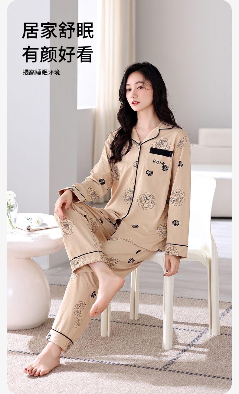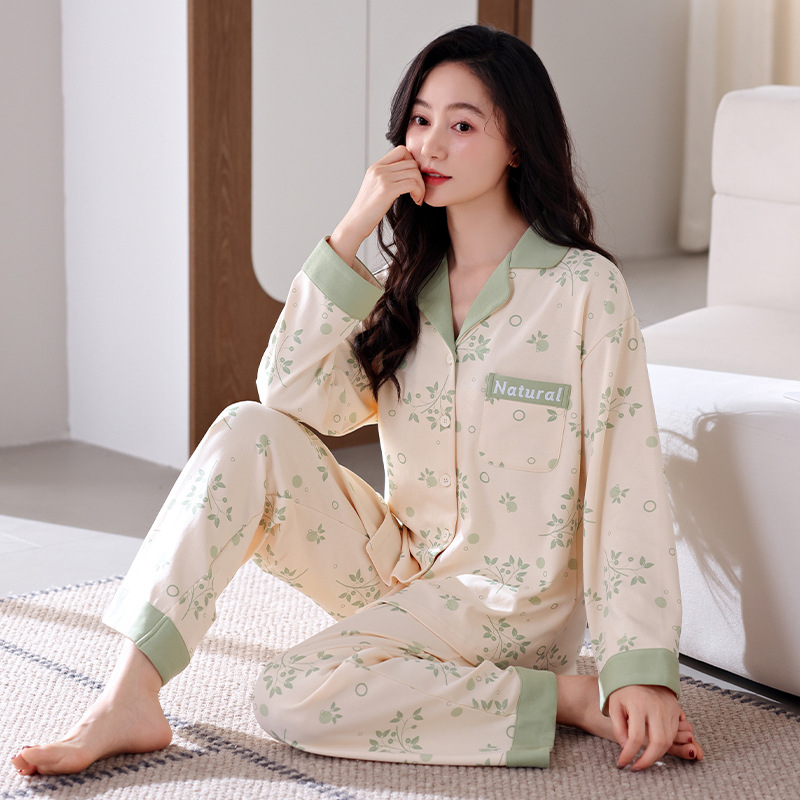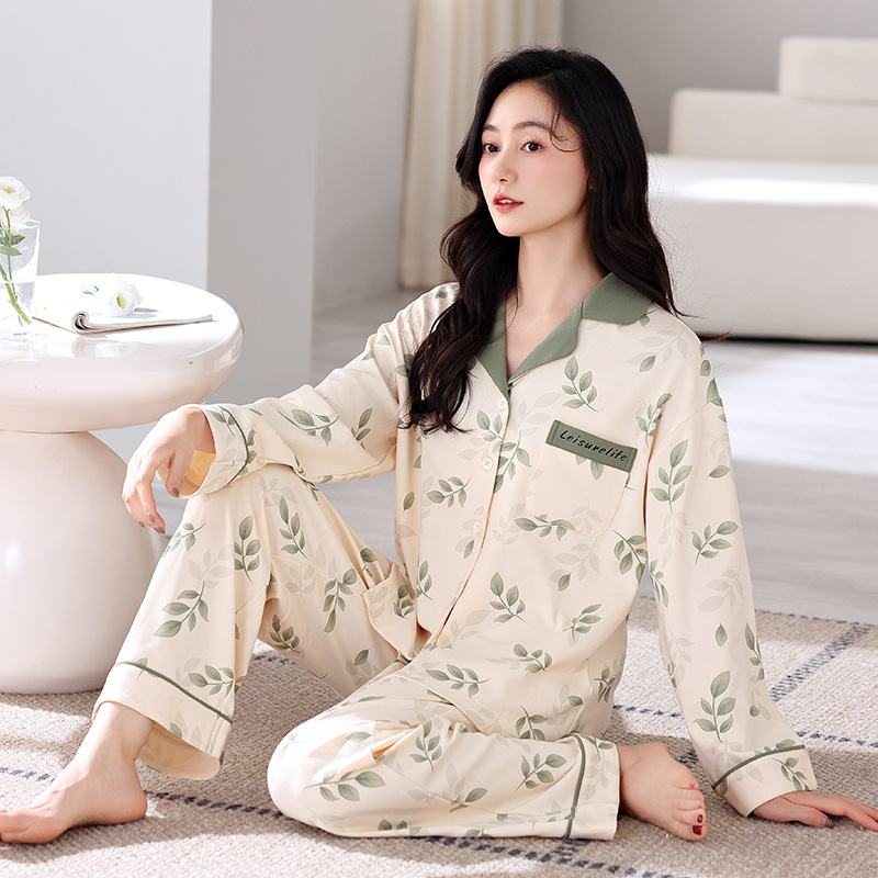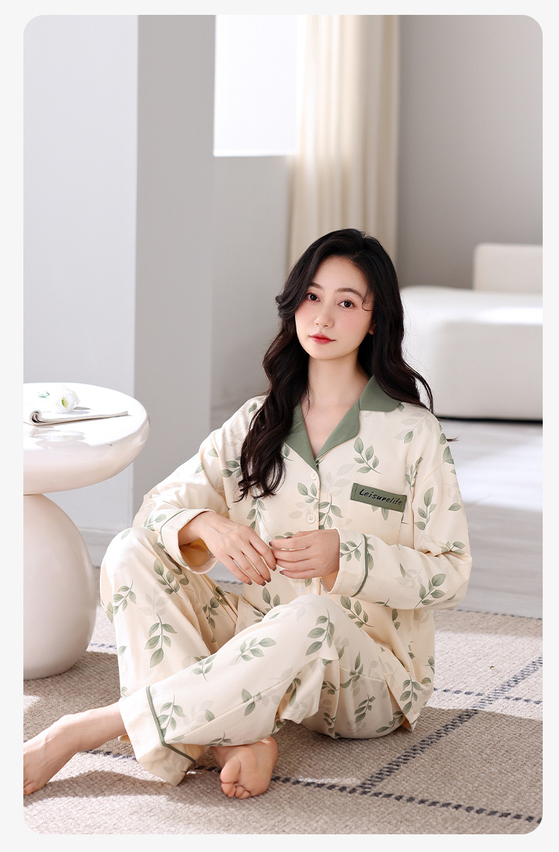 잠옷 여성의 봄과 가을 면 긴 소매 2024 새로운 여성의 봄 얇은 면 엄마 여자 홈 의류 세트스토어 가기