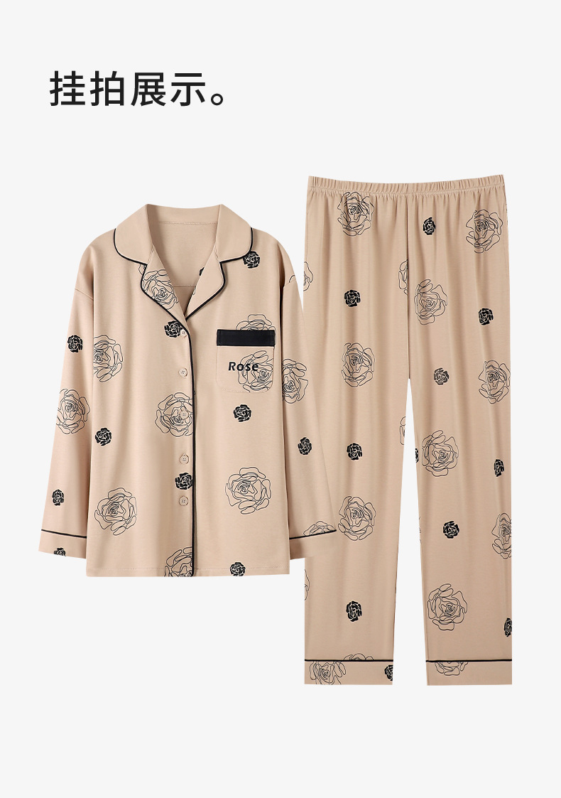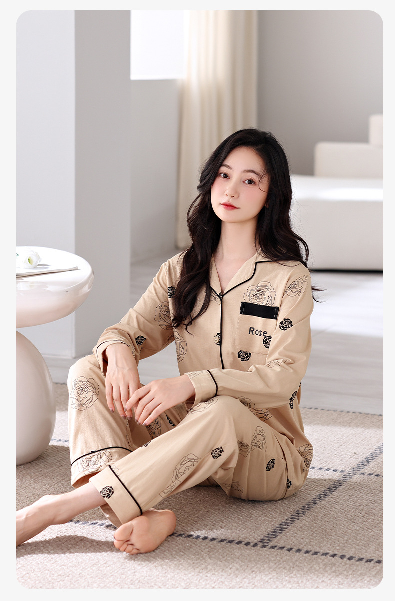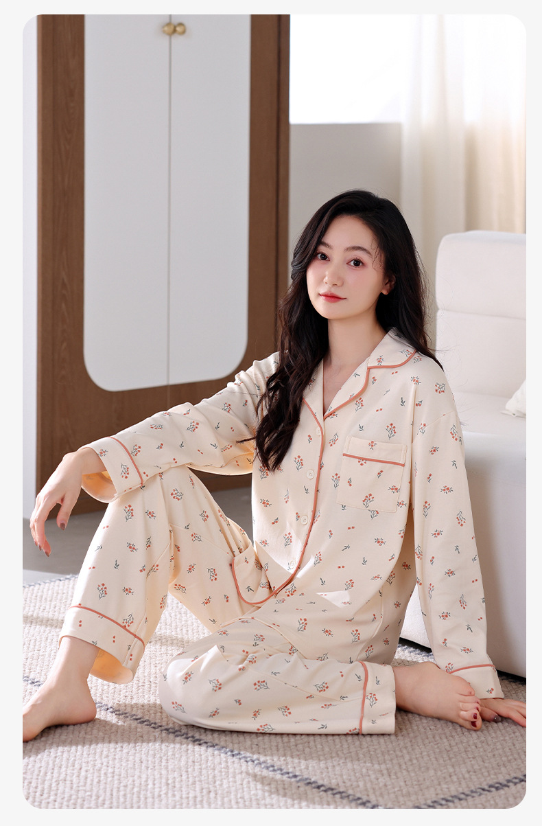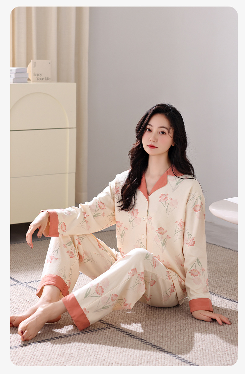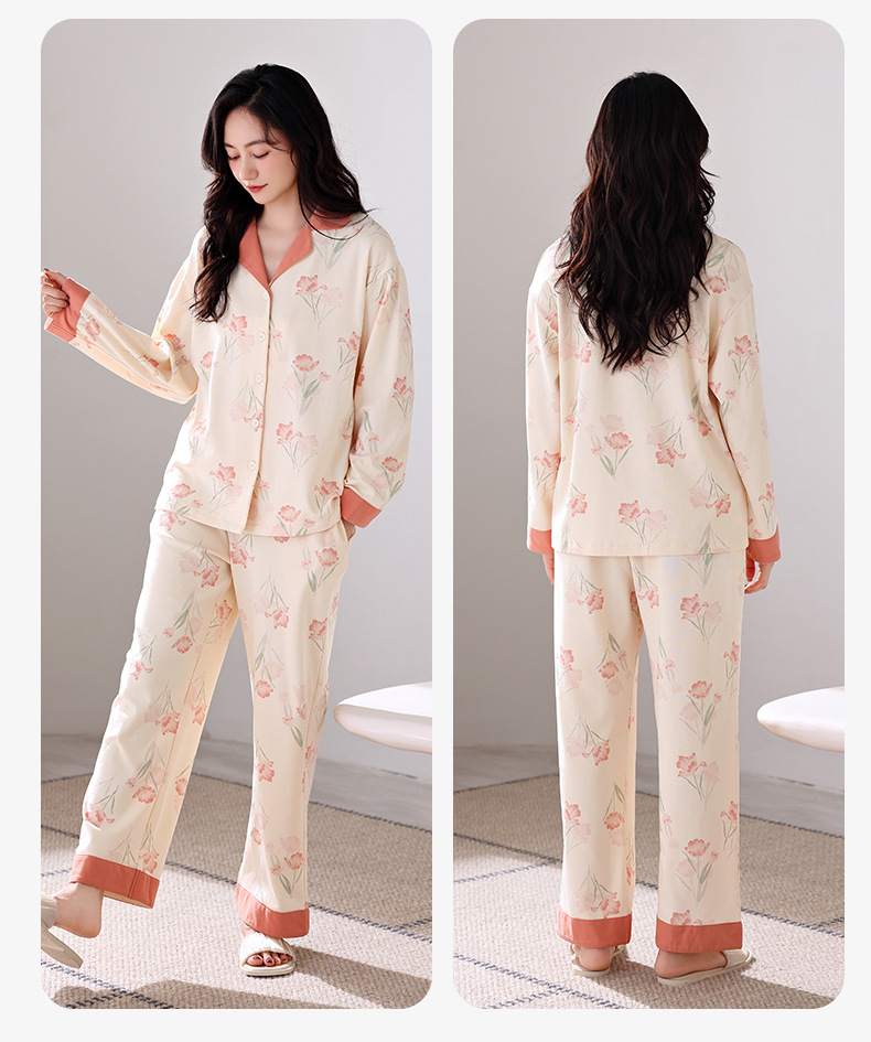 잠옷 여성의 봄과 가을 면 긴 소매 2024 새로운 여성의 봄 얇은 면 엄마 여자 홈 의류 세트스토어 가기