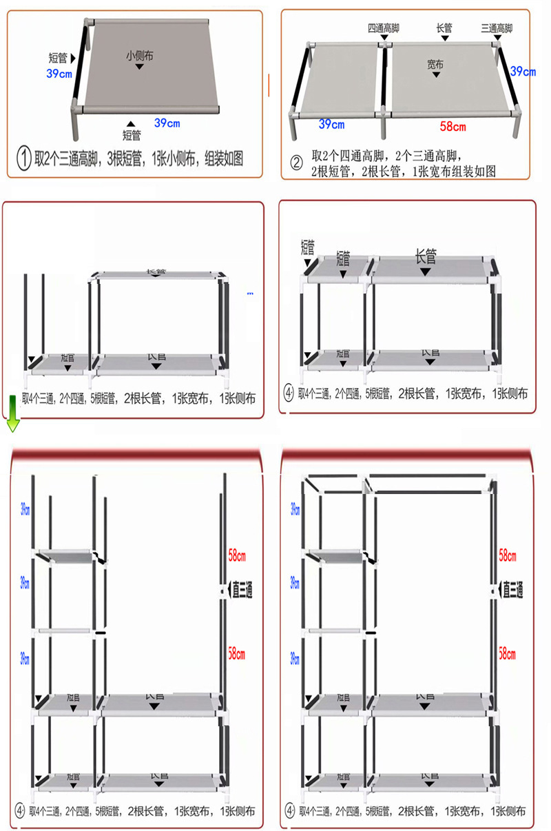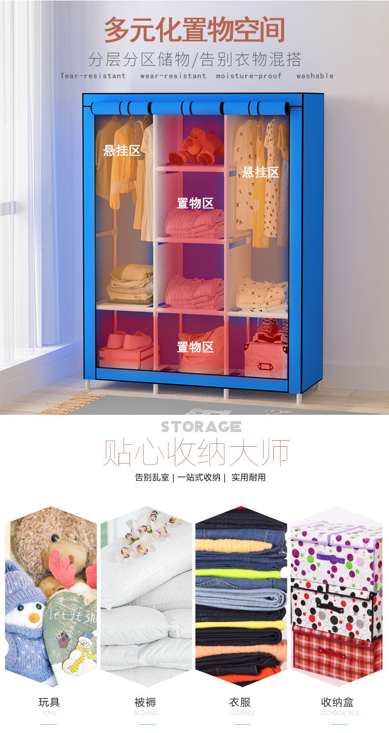 국경 간 간단한 옷장 조합 부직포 옷장 4 지퍼 확장 보관 옷장 강화 기숙사 옷장 제조업체스토어 가기