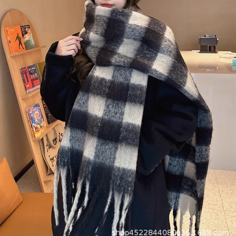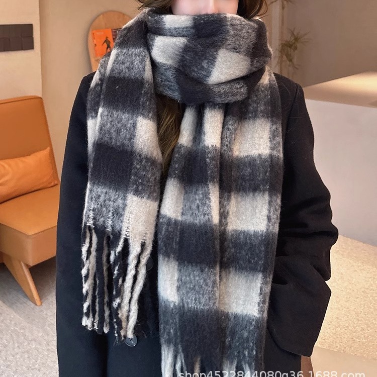 Yu Shuxin 스카프 여자 겨울 2024 새로운 올매치 하이 엔드 센스 커플 남성을위한 흑백 격자 무늬 따뜻한 목스토어 가기