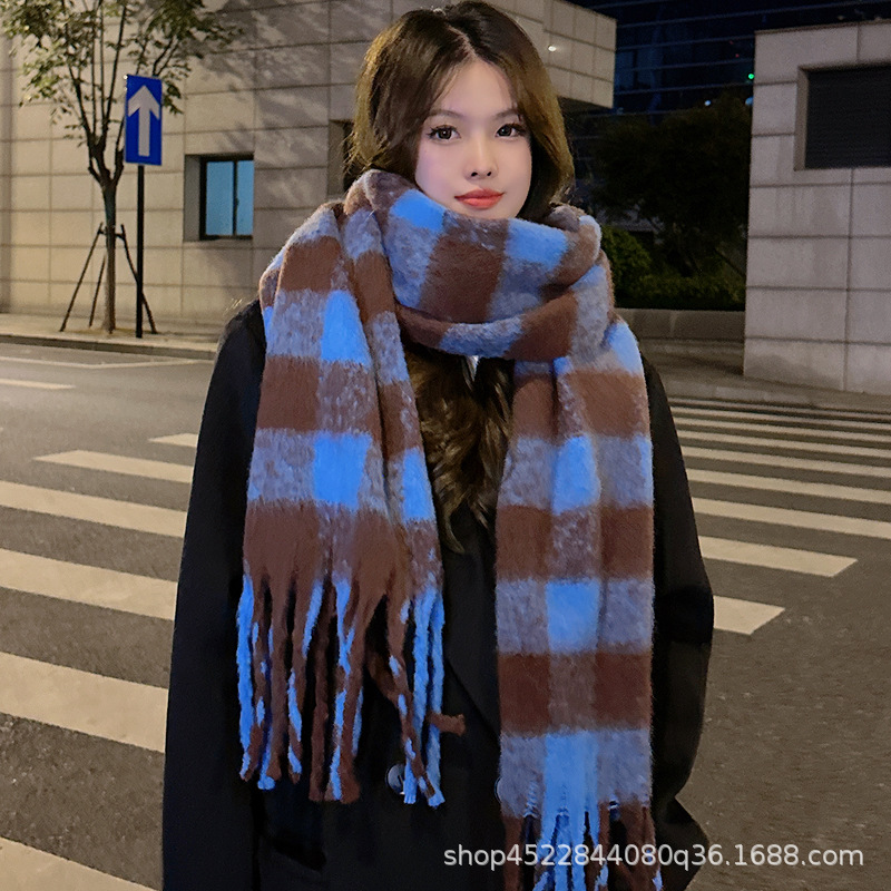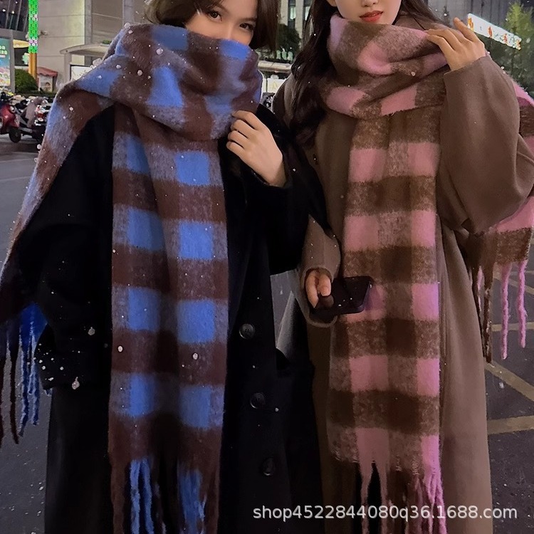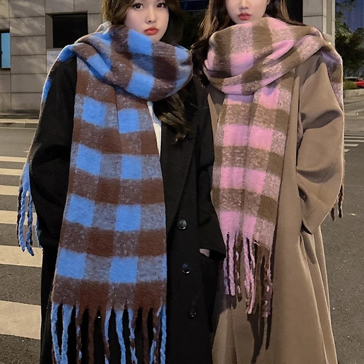 Yu Shuxin 스카프 여자 겨울 2024 새로운 올매치 하이 엔드 센스 커플 남성을위한 흑백 격자 무늬 따뜻한 목