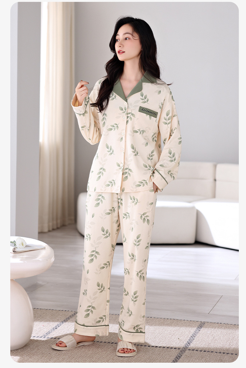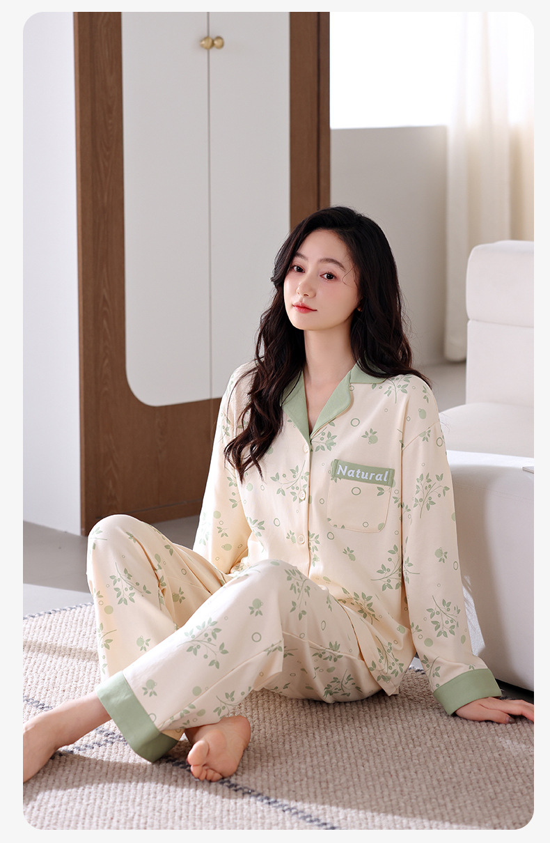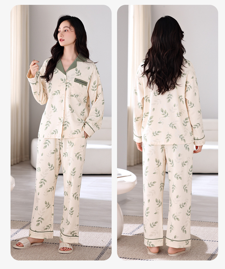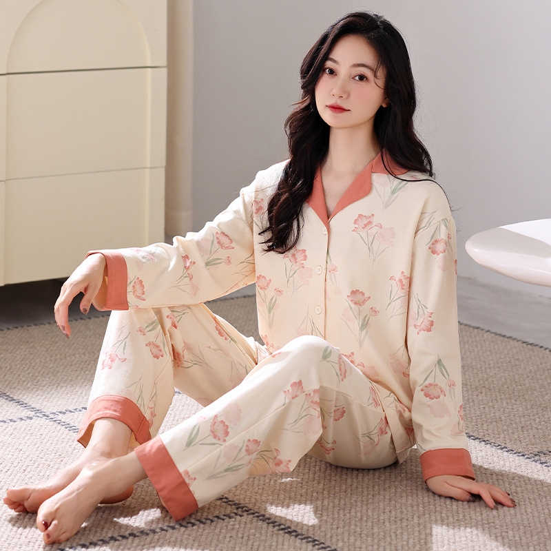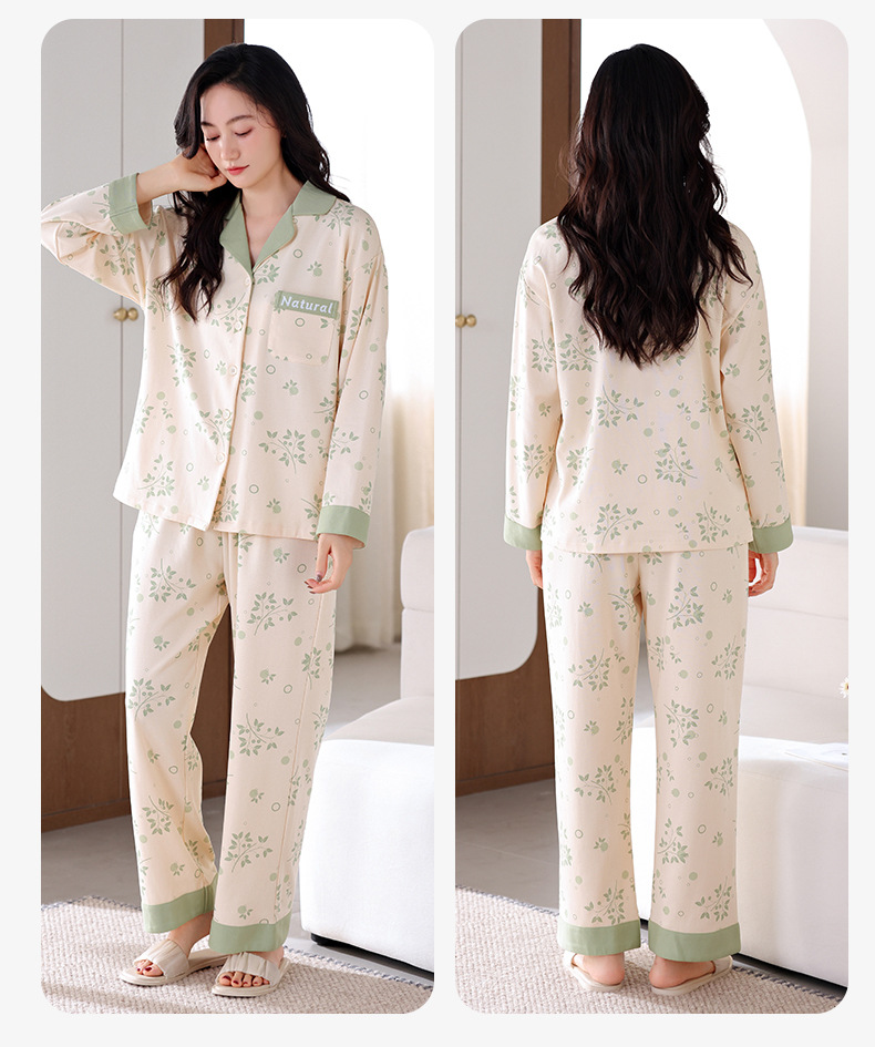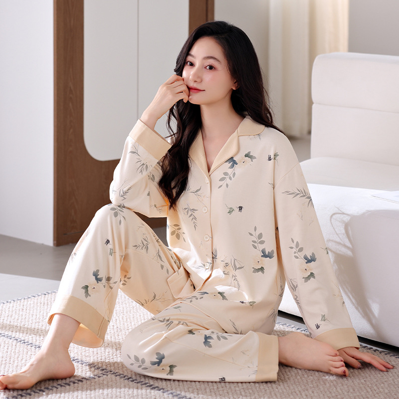 2024 년 새 잠옷 여성 봄과 가을 가을 면화 긴 소매 홈 의류 가을과 겨울 얇은 어머니 플러스 사이즈 세트스토어 가기