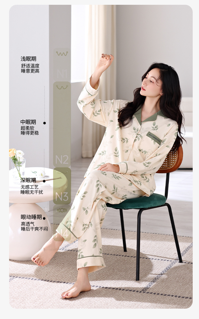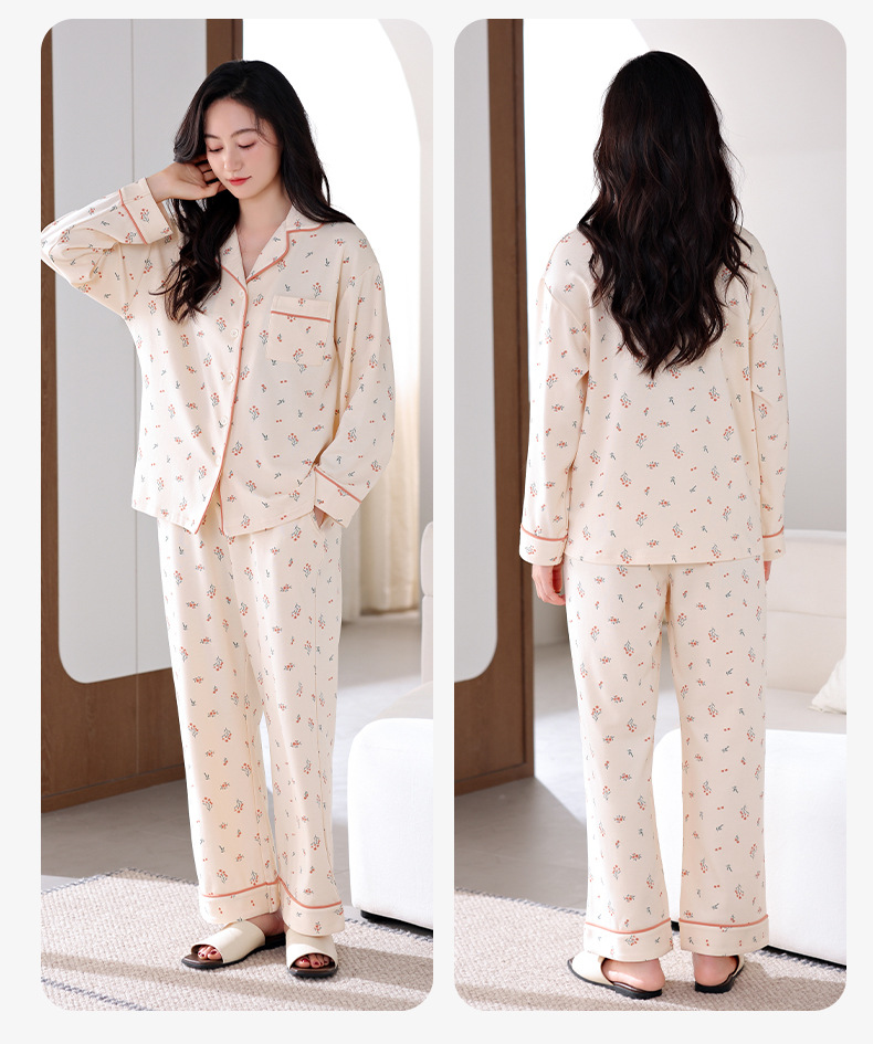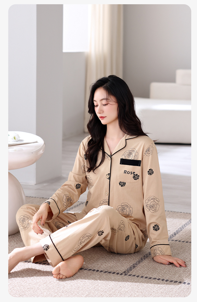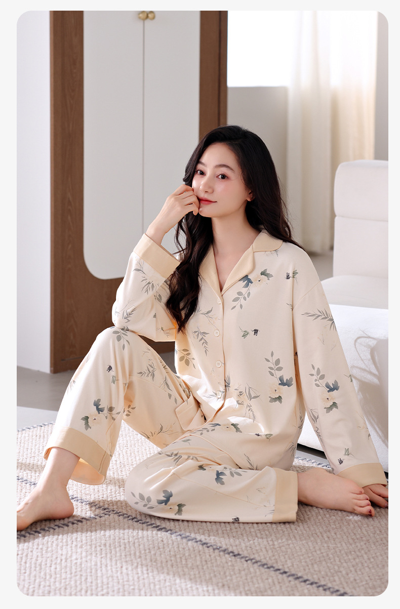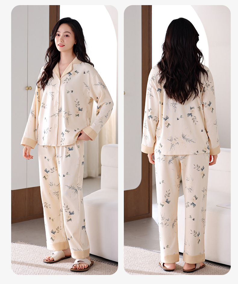 2024 년 새 잠옷 여성 봄과 가을 가을 면화 긴 소매 홈 의류 가을과 겨울 얇은 어머니 플러스 사이즈 세트스토어 가기