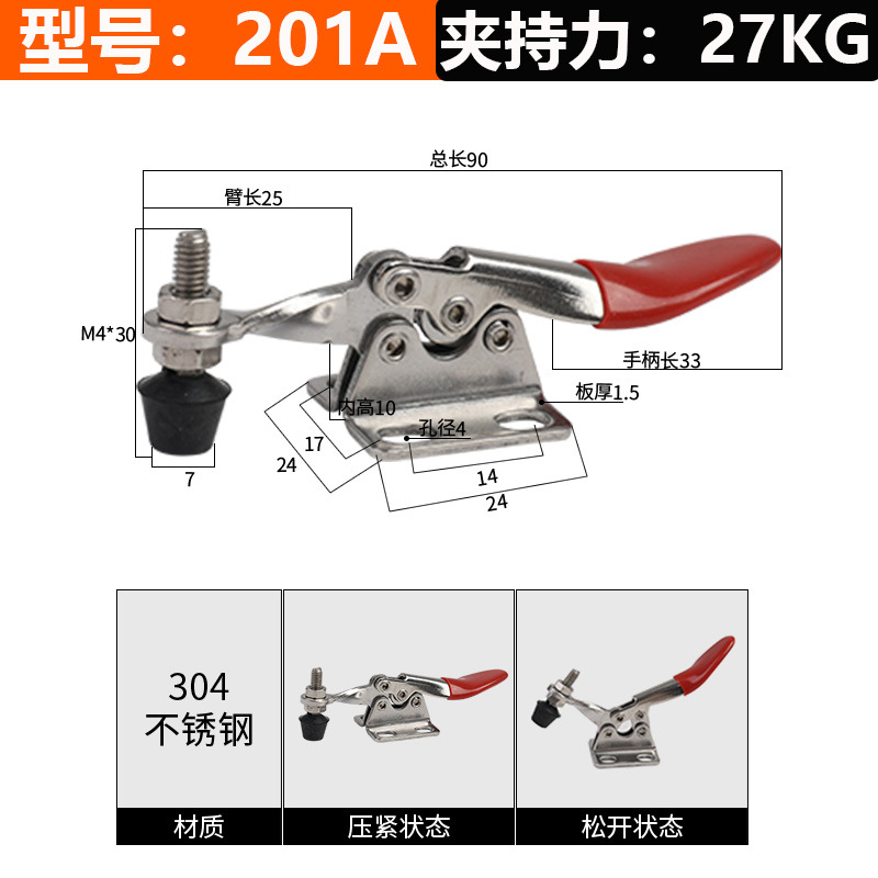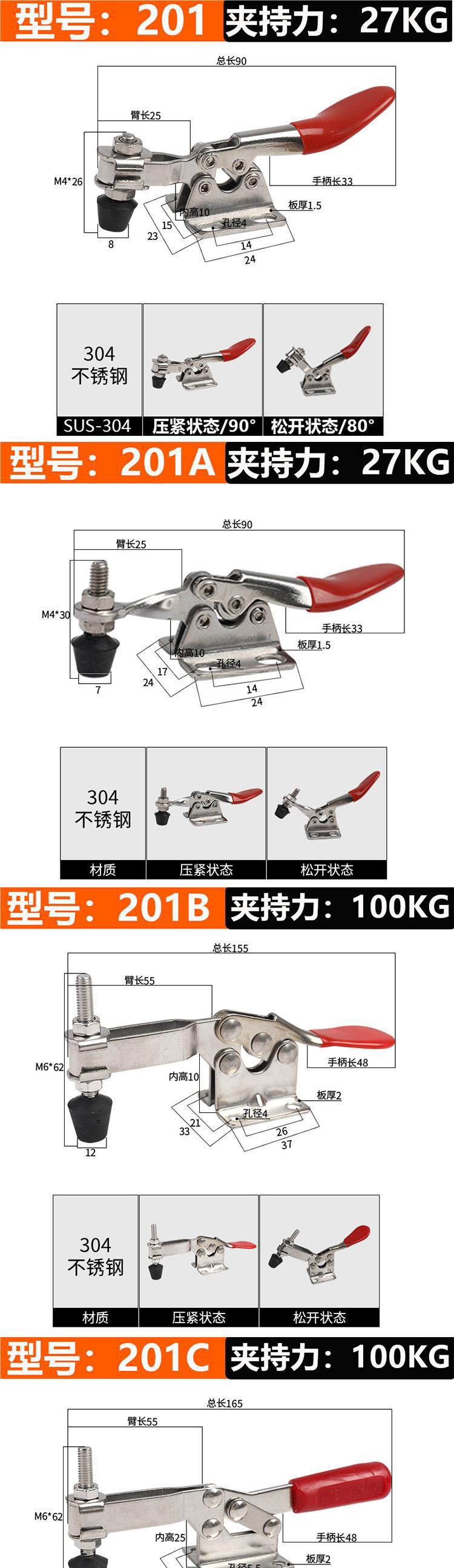 • 201B(304 스테인레스 스틸) 클램핑력 90kg