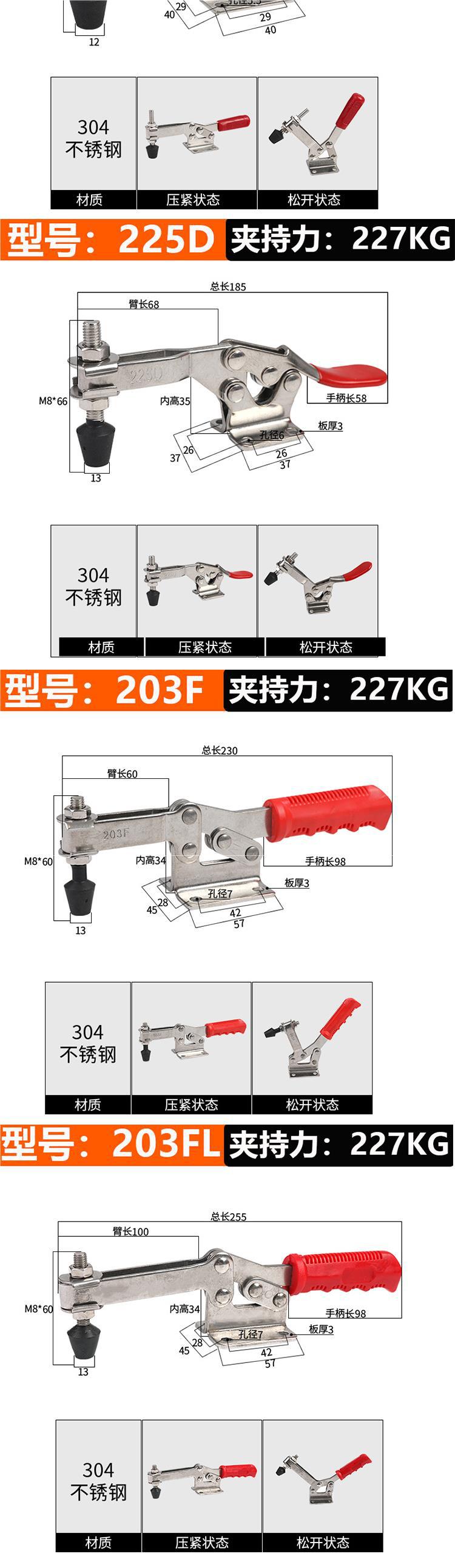 • 203F(304 스테인레스 스틸) 클램핑력 200