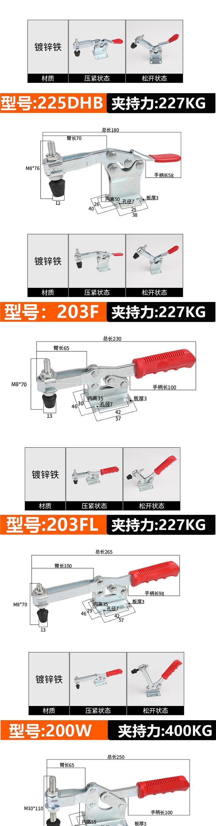 빠른 클램프 수평 클램프 201C203F 용접 고정 공구 클램프 목공 조각 기계 프레스