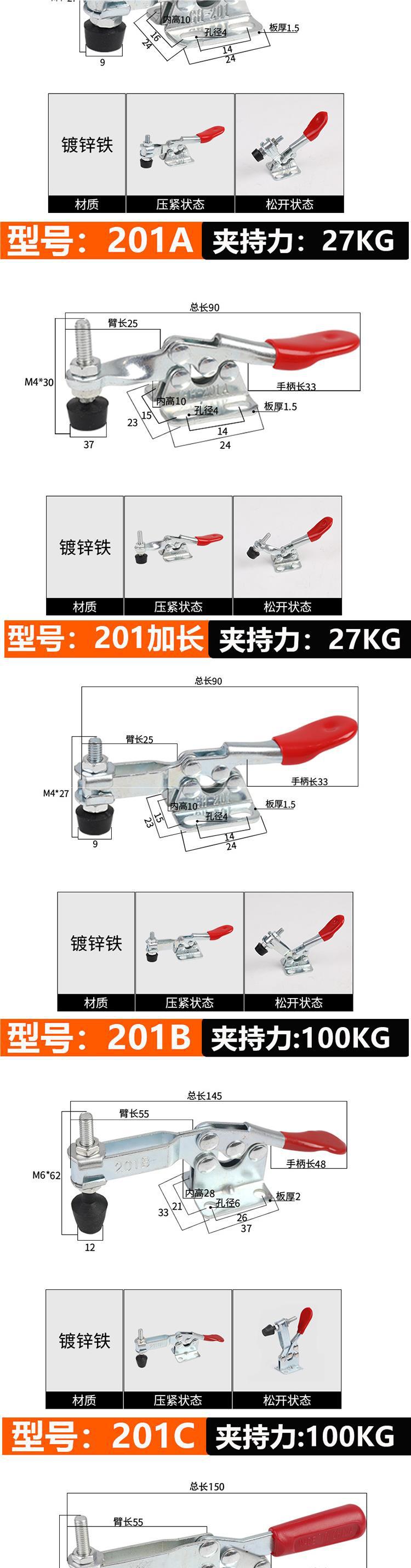 빠른 클램프 수평 클램프 201C203F 용접 고정 공구 클램프 목공 조각 기계 프레스스토어 가기