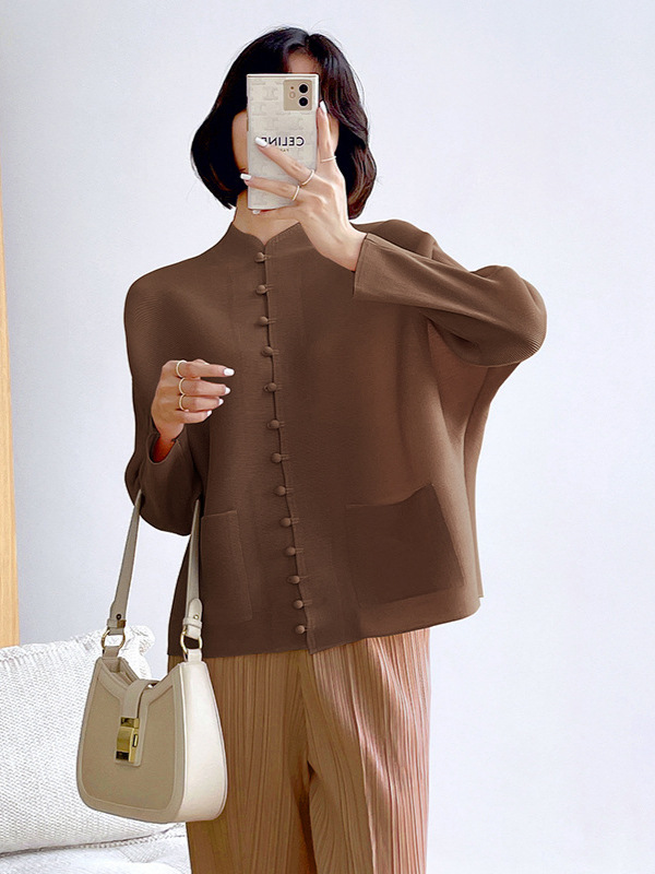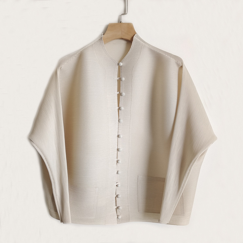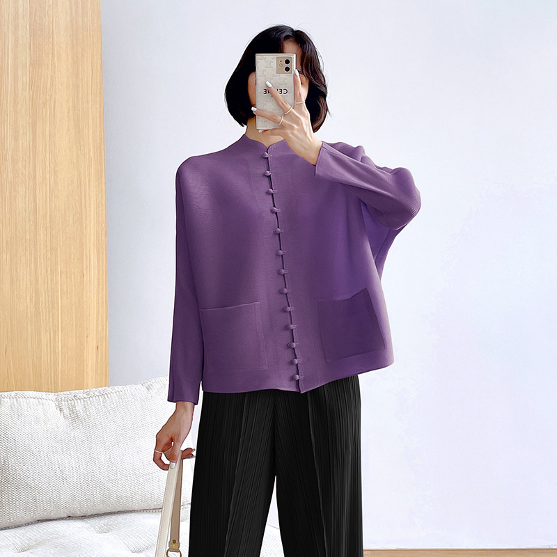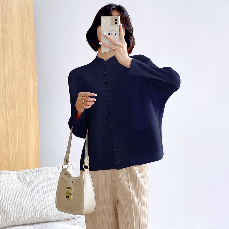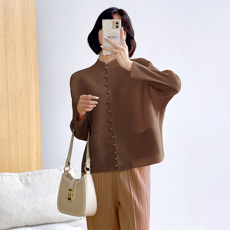 새로운 중국 스타일 여성 슈퍼 탄성 탑 미야케 레트로 카디건 13 버튼 느슨한 플러스 사이즈 느슨한 슬림 셔츠스토어 가기