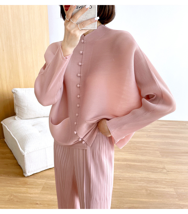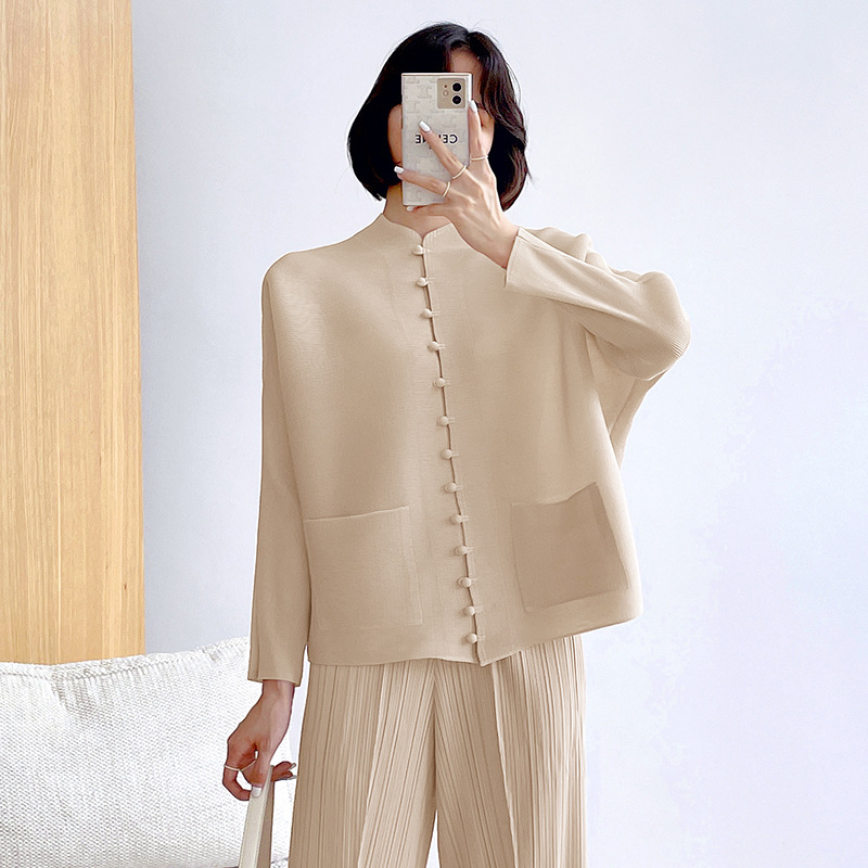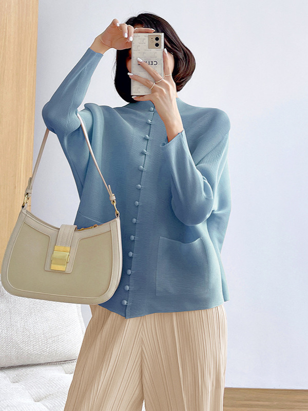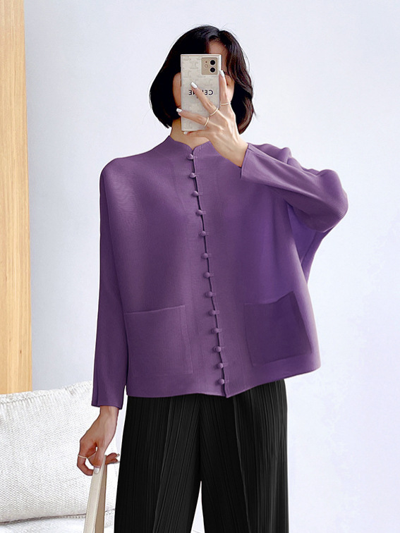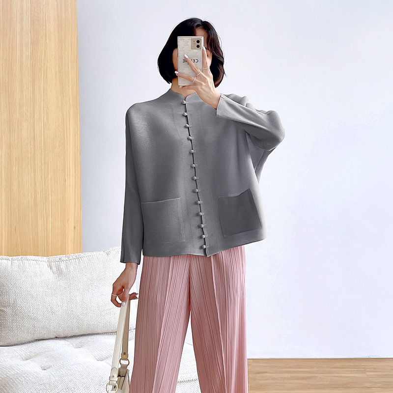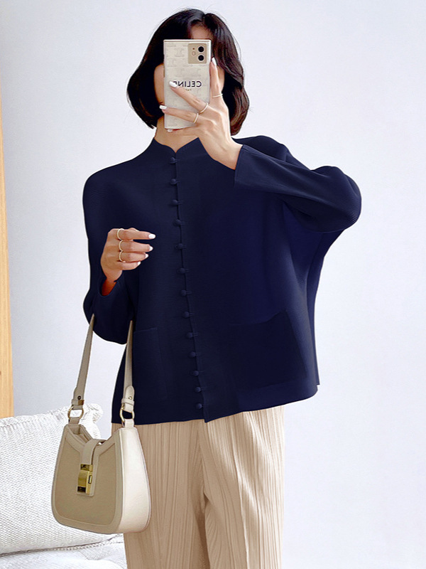새로운 중국 스타일 여성 슈퍼 탄성 탑 미야케 레트로 카디건 13 버튼 느슨한 플러스 사이즈 느슨한 슬림 셔츠스토어 가기
