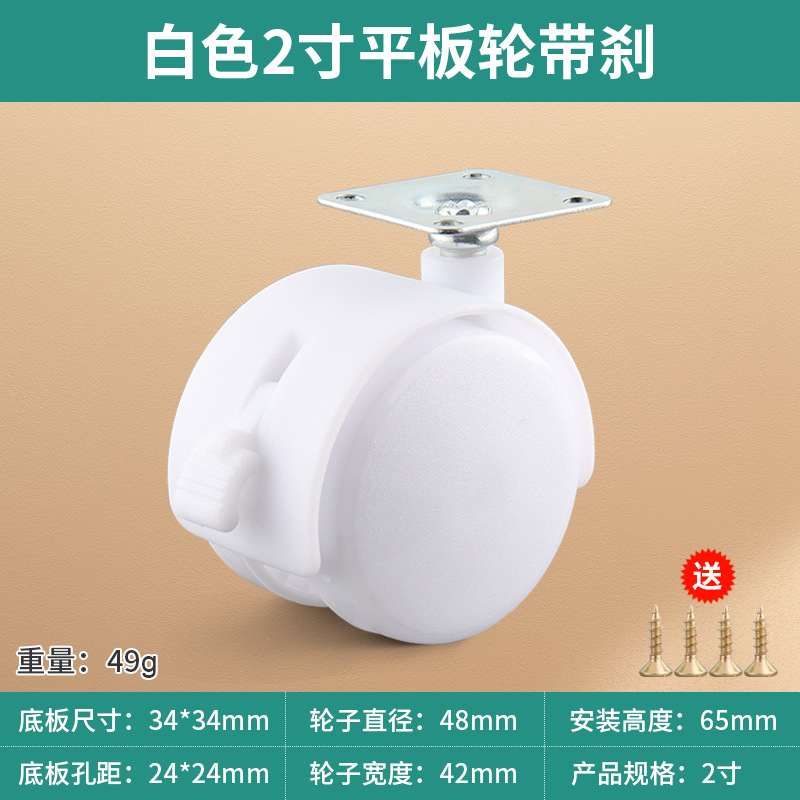 • 2inch 플랫 휠 화이트 [브레이크 포함] 4개