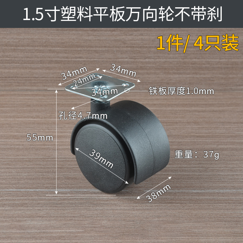1.5 인치 평면 바닥 가구 유니버설 휠 플라스틱 실크 휠 캐스터 커피 테이블 휠 소파 휠 침대 옆 테이블 풀리