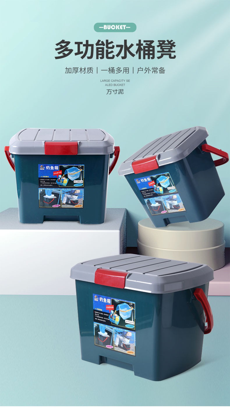 뚜껑이 달린 두꺼운 낚시 양동이 플라스틱 보관 용 버킷 의자 가정용 보관 용 버킷 대형 세차 버킷 사이트 상자스토어 가기