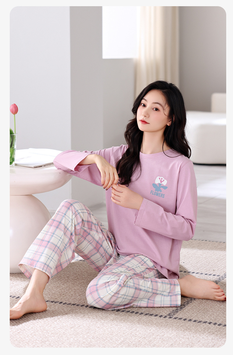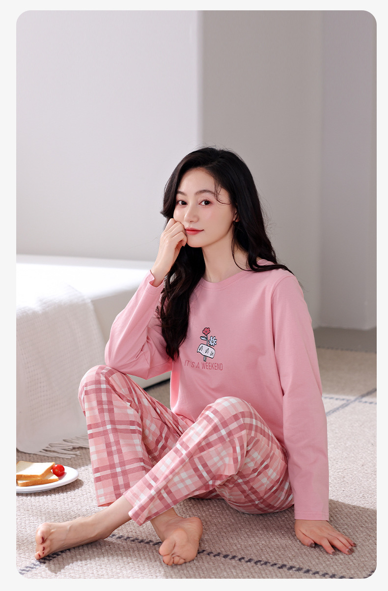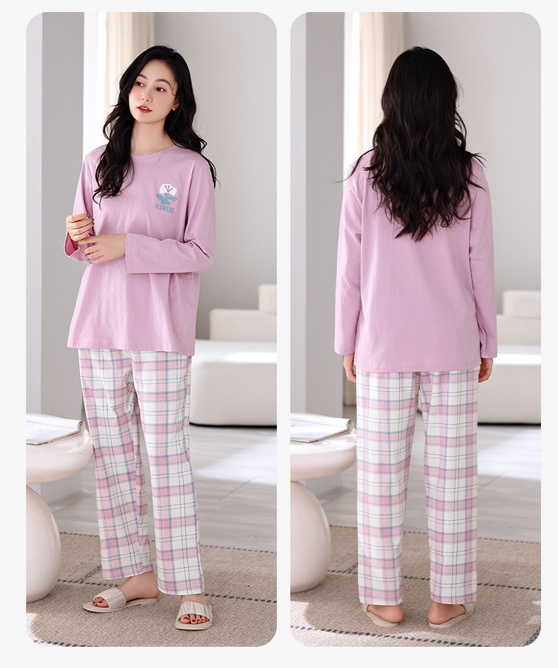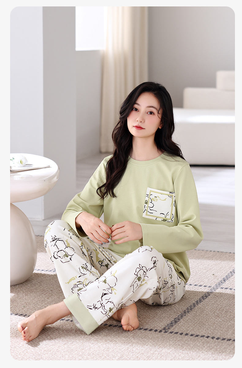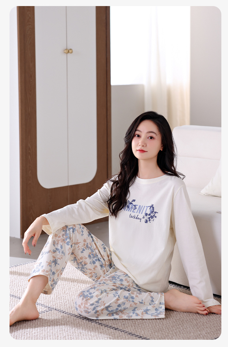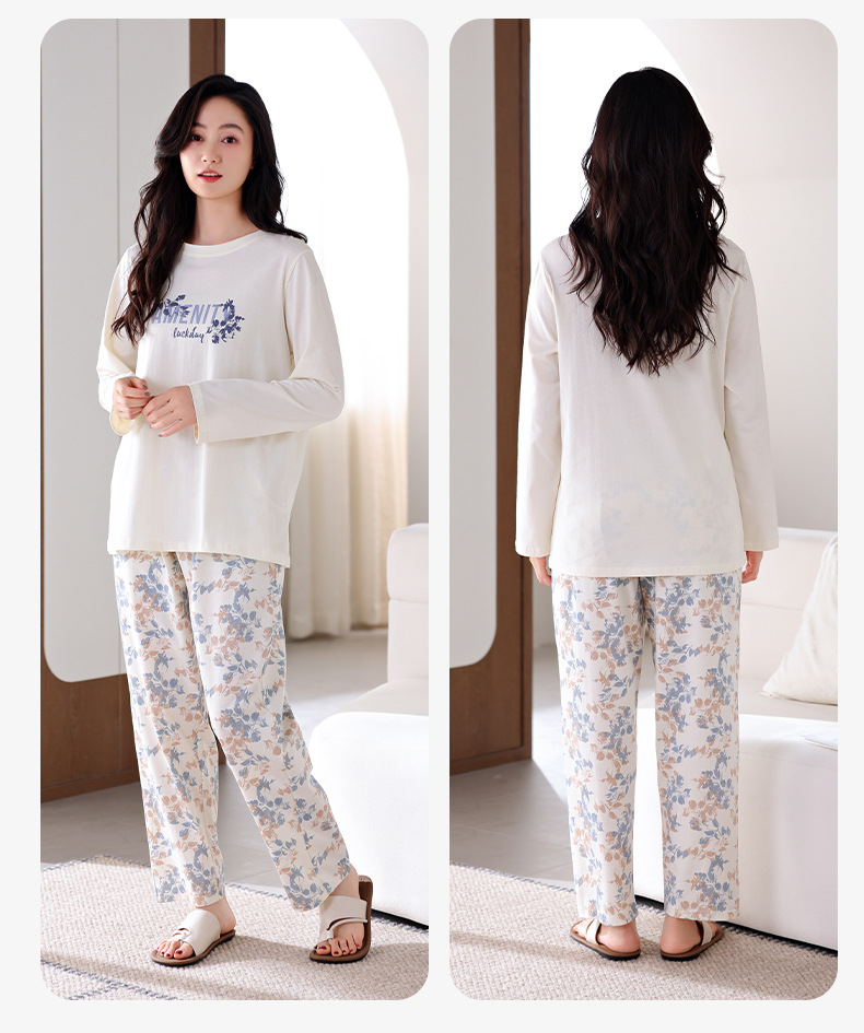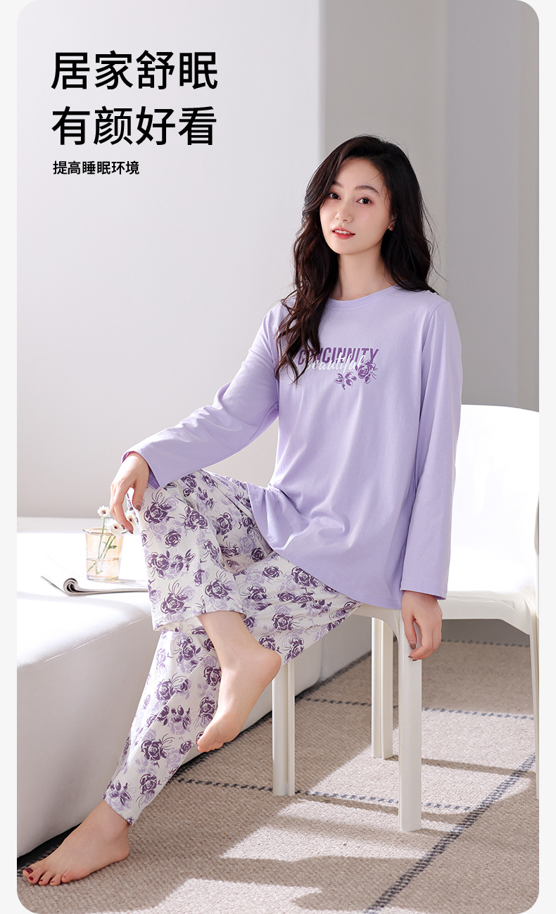 잠옷 여성의 2024 새로운 봄면 긴 소매 봄과 가을 면 얇은 느슨한 캐주얼 홈 의류 세트스토어 가기