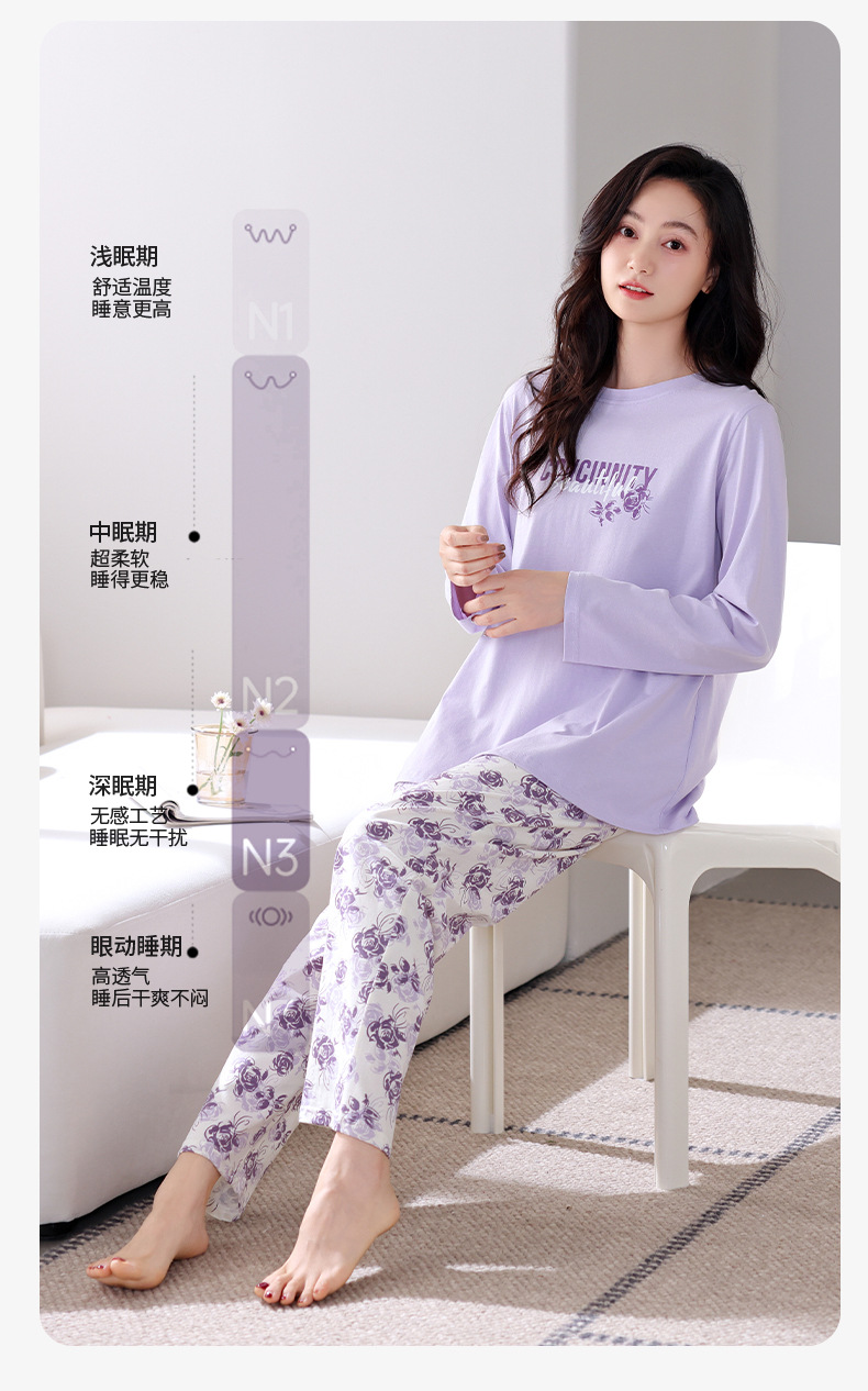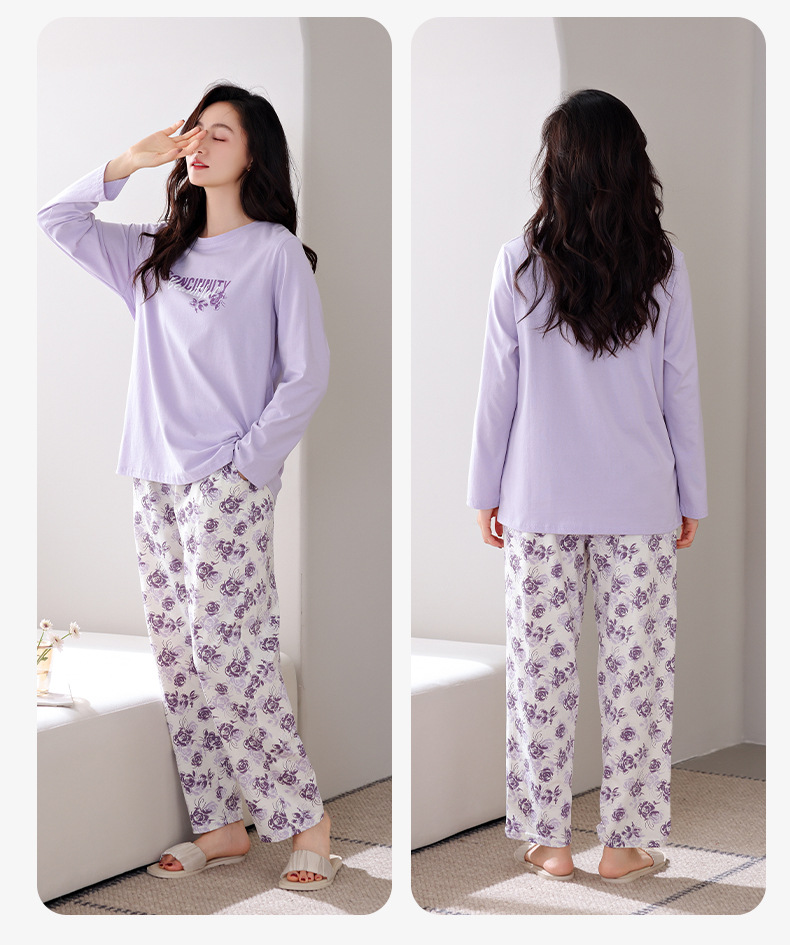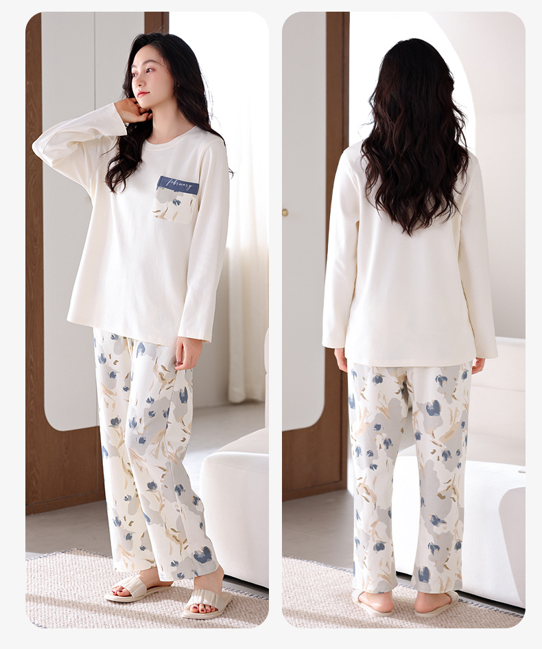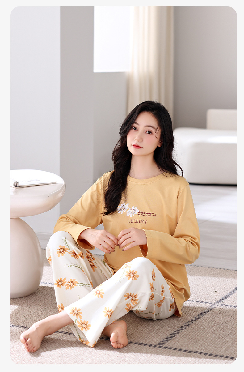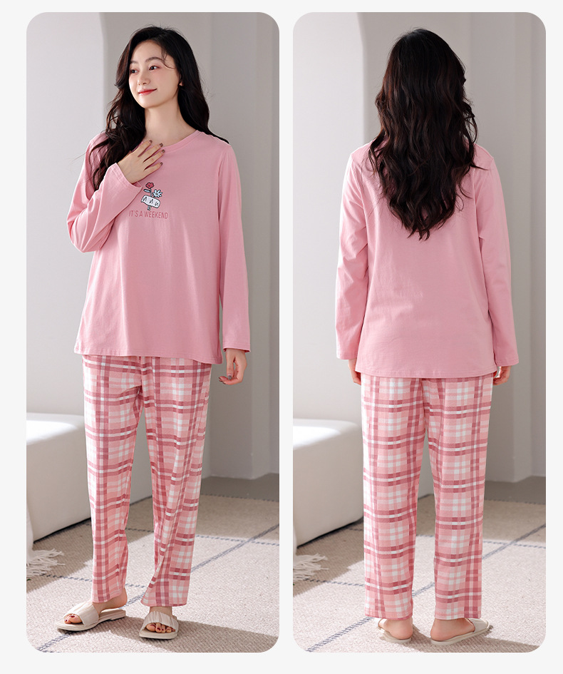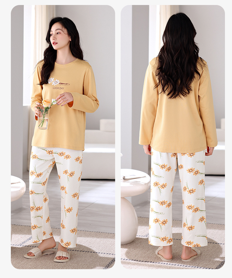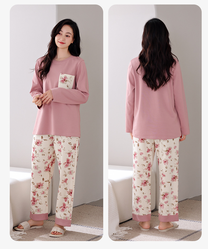 잠옷 여성의 2024 새로운 봄면 긴 소매 봄과 가을 면 얇은 느슨한 캐주얼 홈 의류 세트스토어 가기