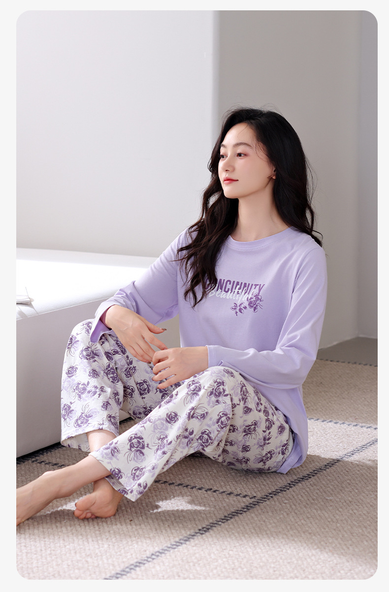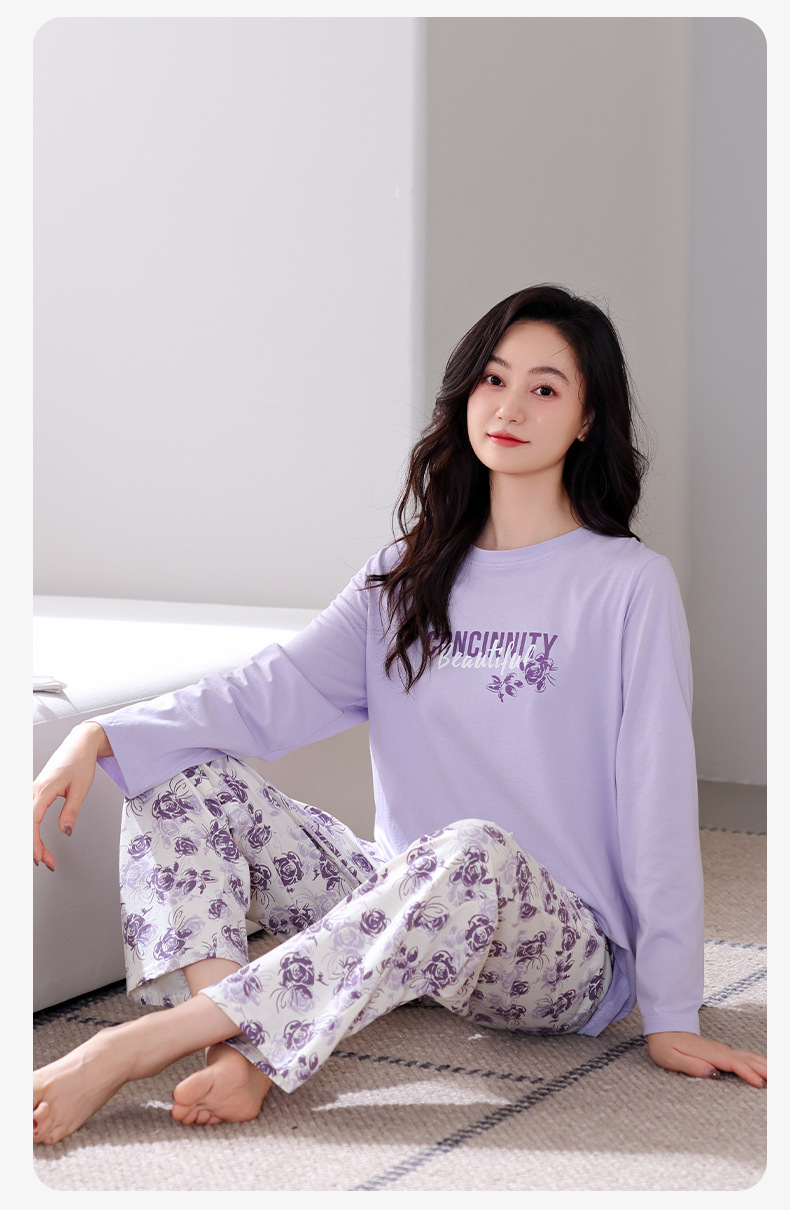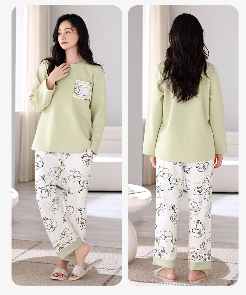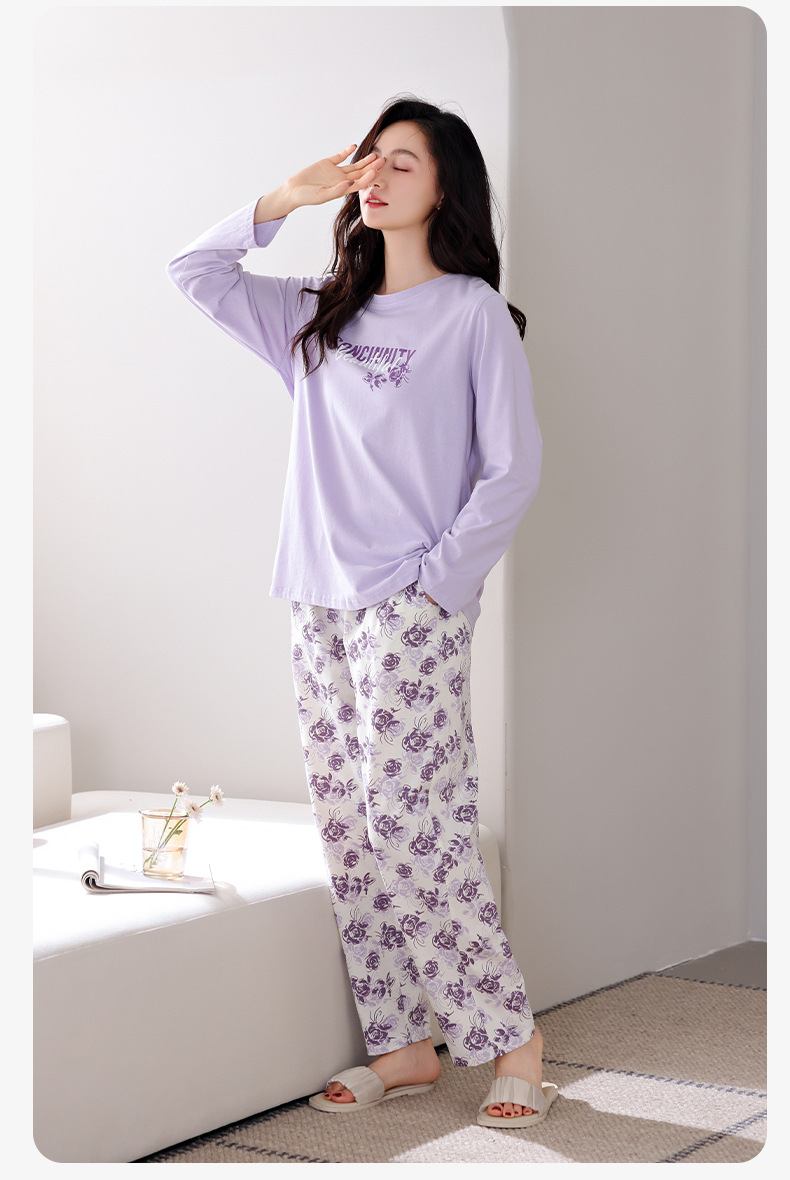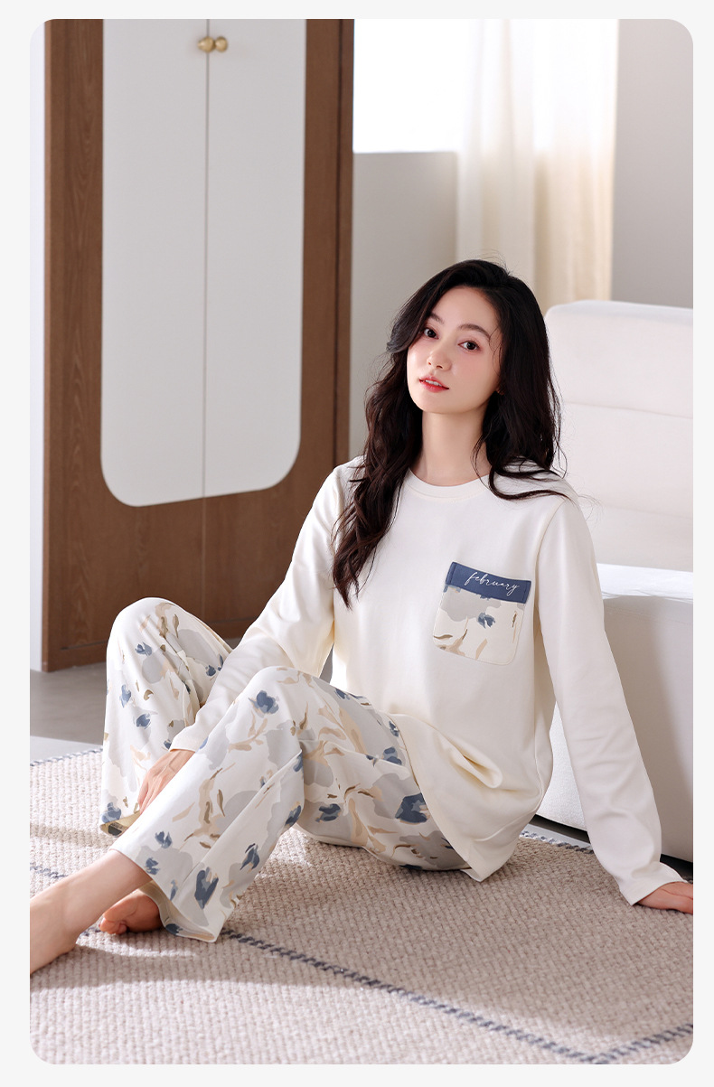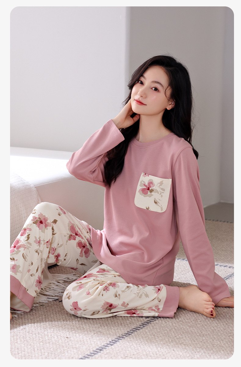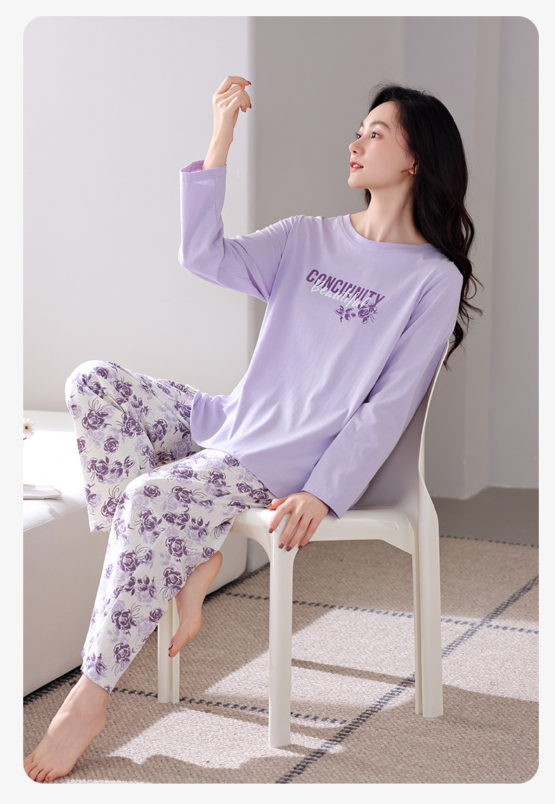 잠옷 여성의 2024 새로운 봄면 긴 소매 봄과 가을 면 얇은 느슨한 캐주얼 홈 의류 세트스토어 가기