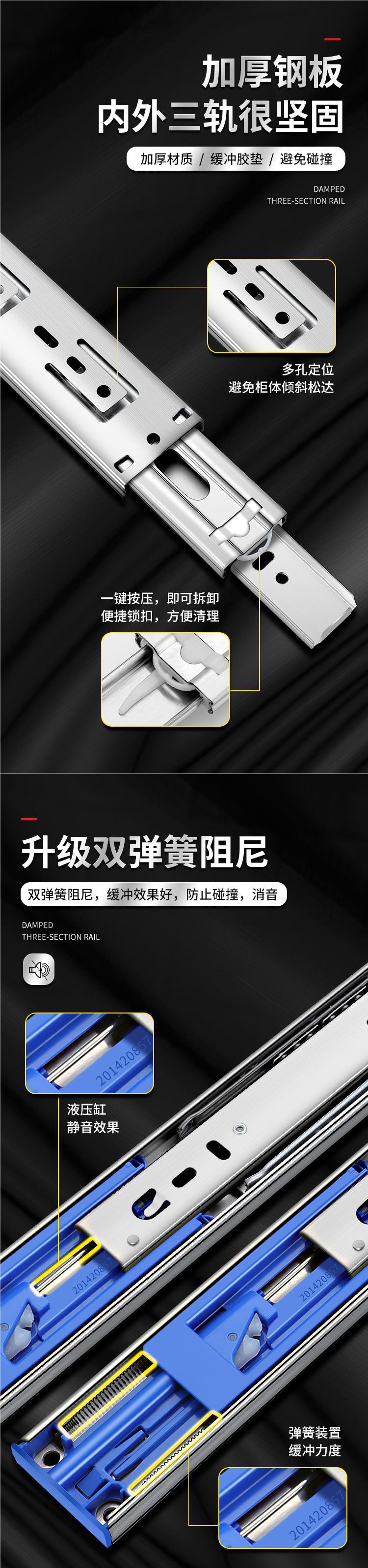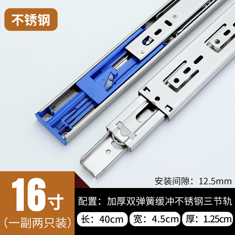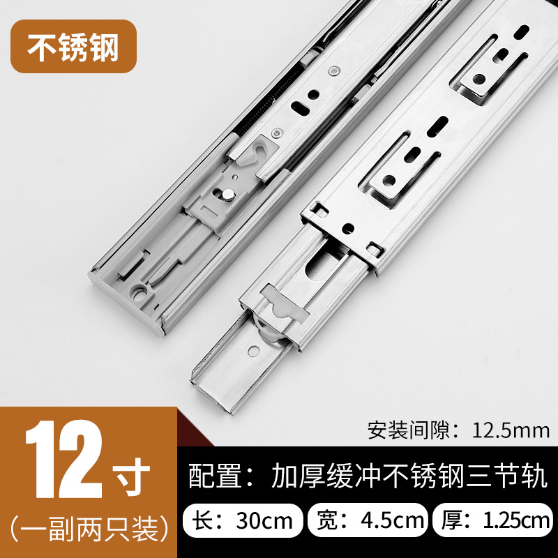스테인레스 스틸 서랍 트랙 3 섹션 댐핑 버퍼 음소거 슬라이드 레일 가구 스틸 볼 가이드 레일 옷장 서랍 트랙