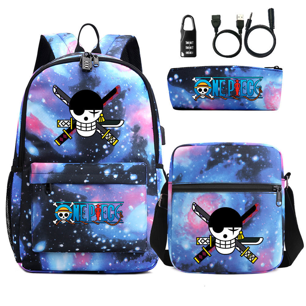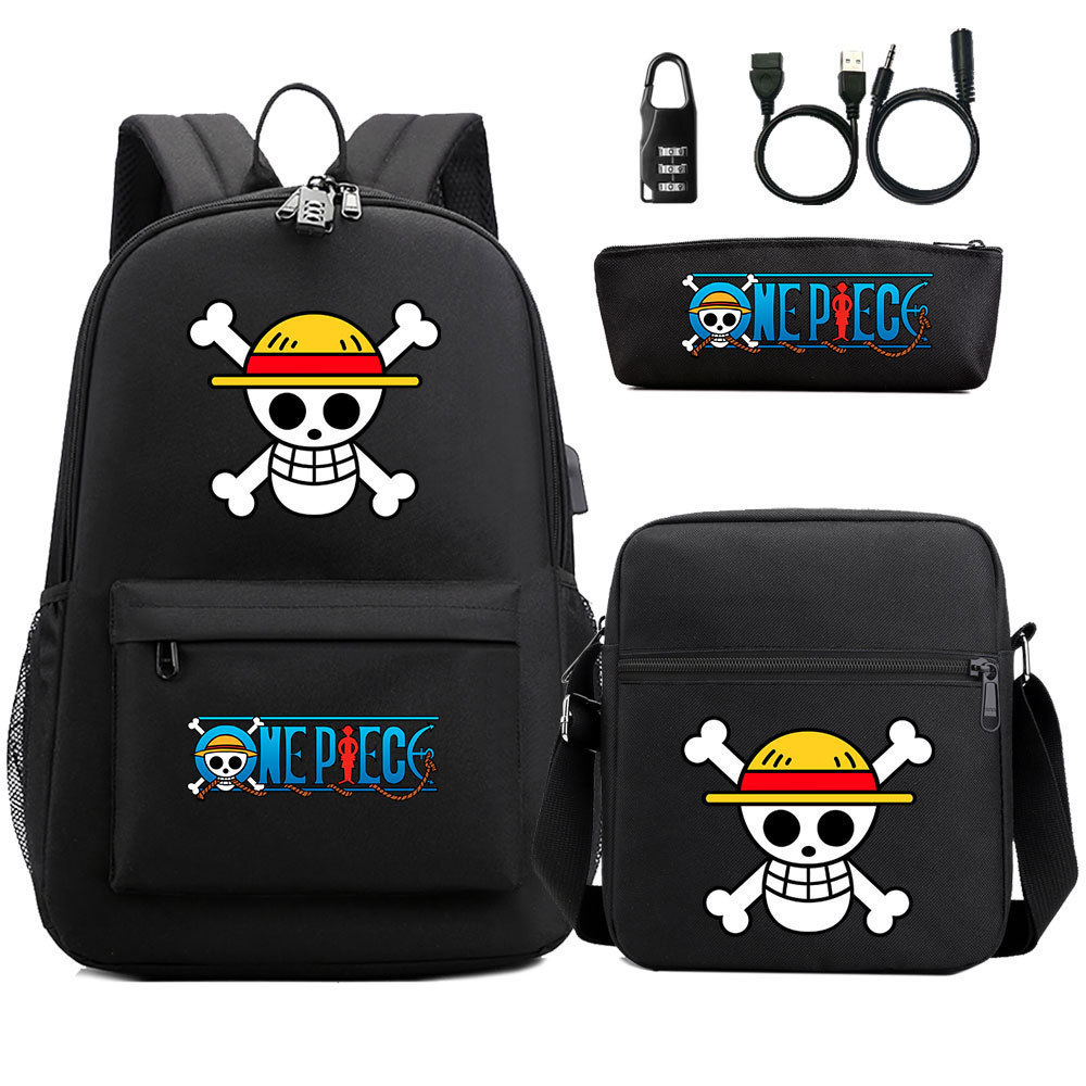 만화 데이 맨 원피스 USB 비밀번호 잠금 10 대 초등 및 중등 학교 스쿨 가방 3 피스 세트 배낭 남성과 여성스토어 가기