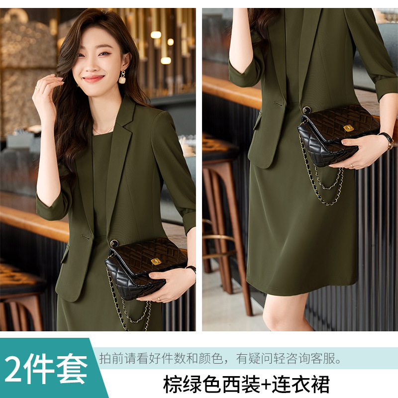 다크 브라운 작은 세트 재킷 여성의 봄과 가을 신작 의류 비즈니스 세트 원피스 세트 투피스 원피스