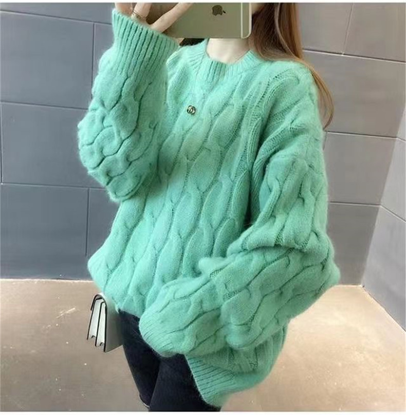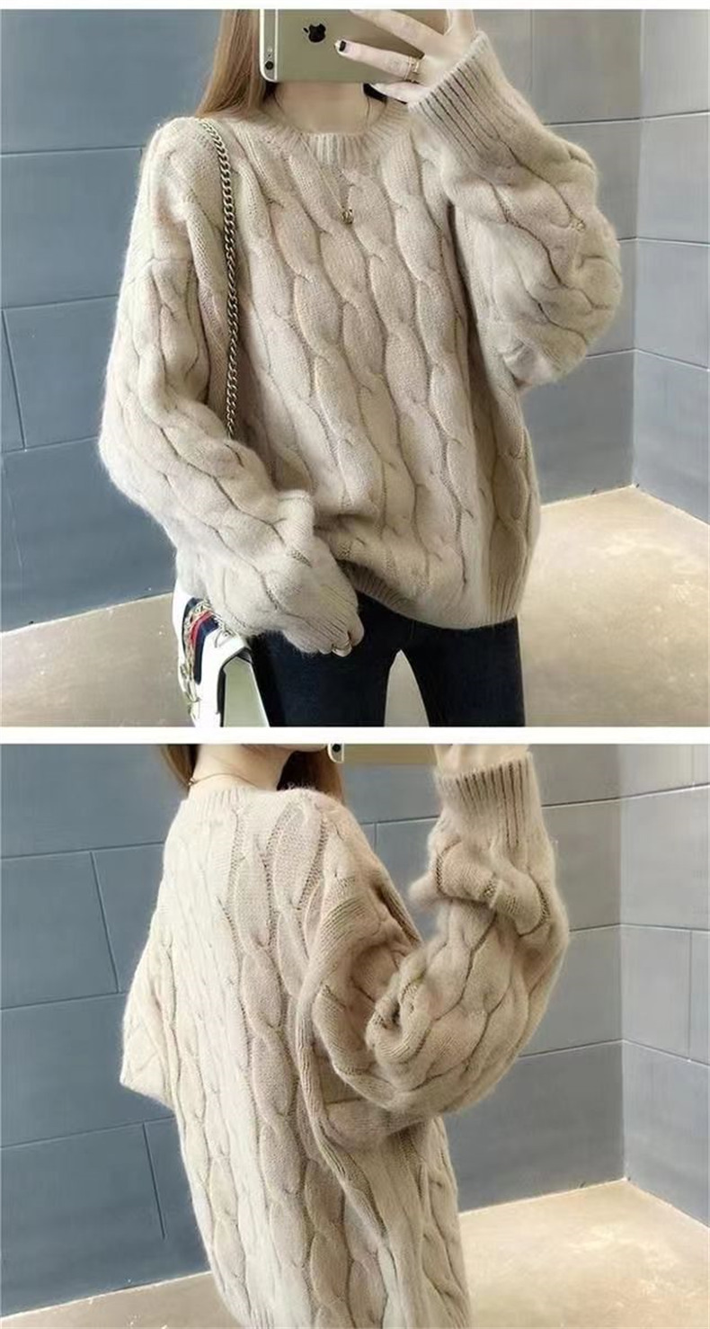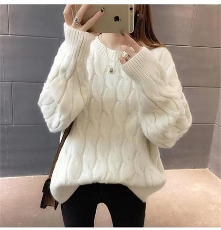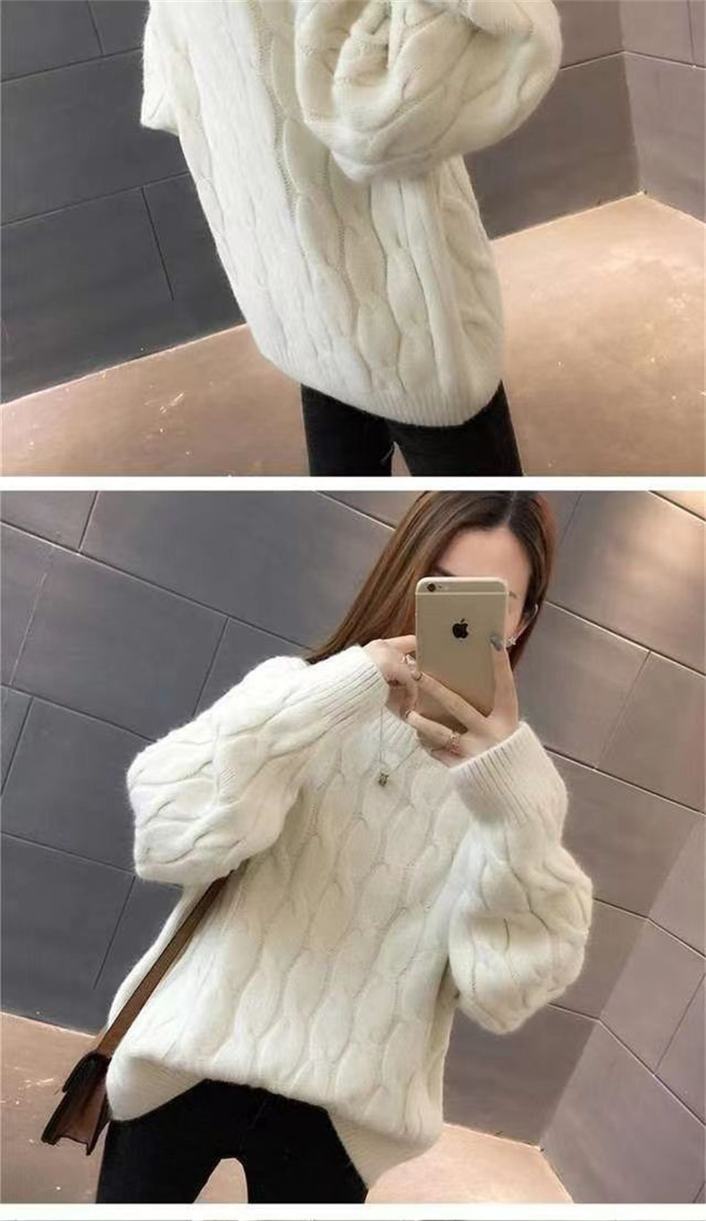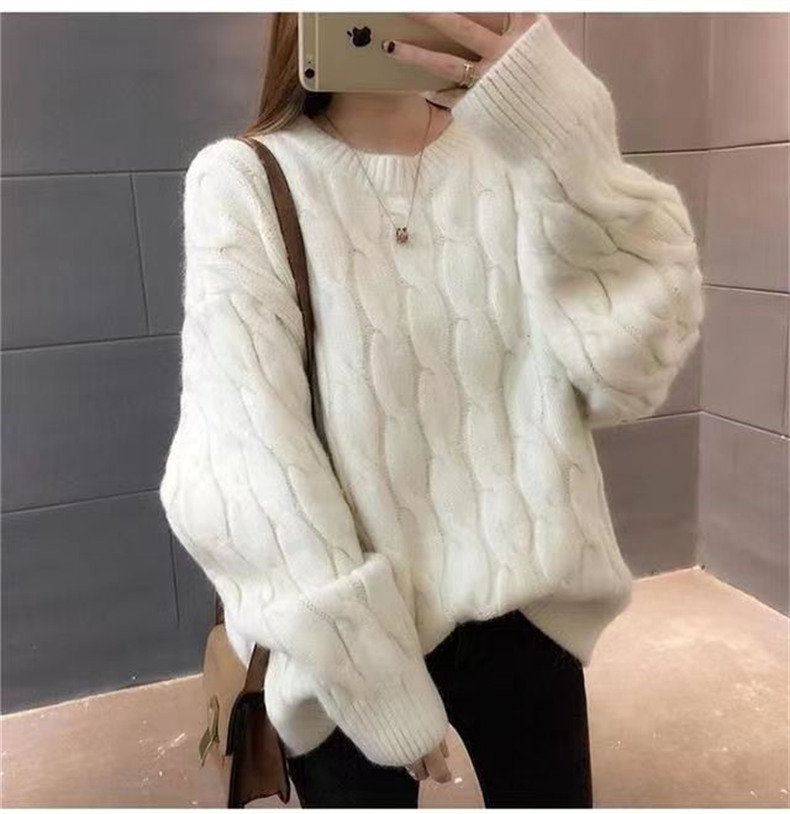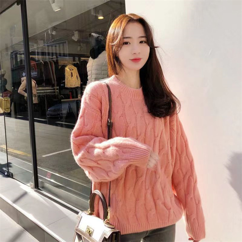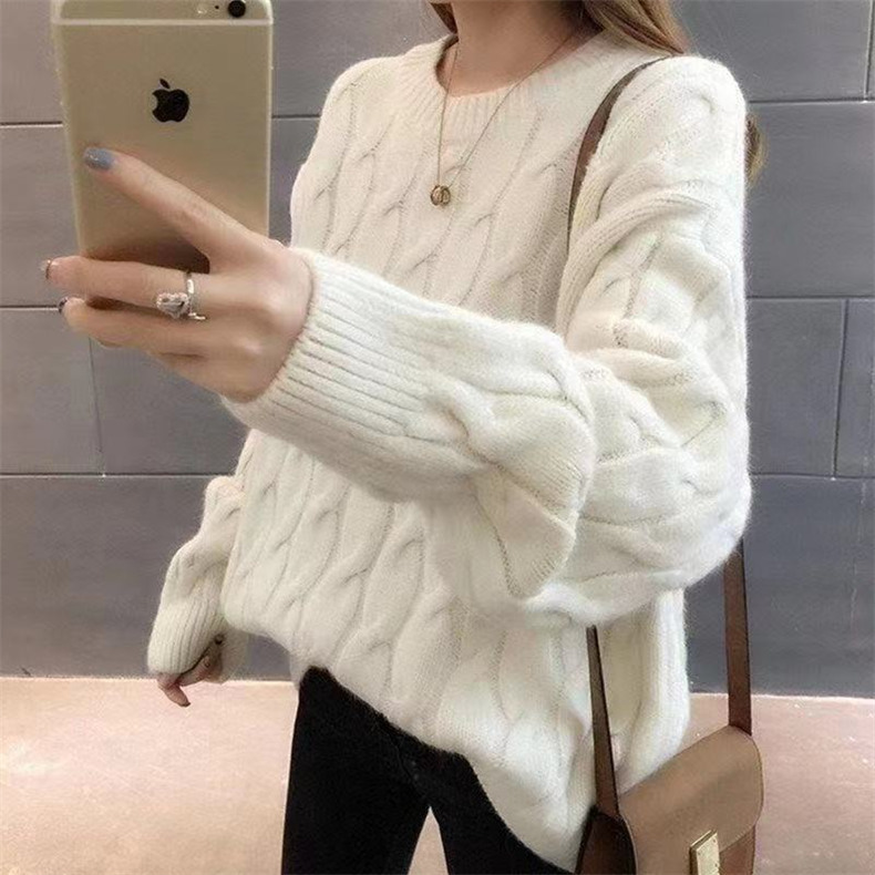 2024 겨울 여성 의류 짧은 유행 학생 코트 스웨터 여성의 느슨한 풀오버 두꺼운 둥근 목 트위스트 스웨터스토어 가기