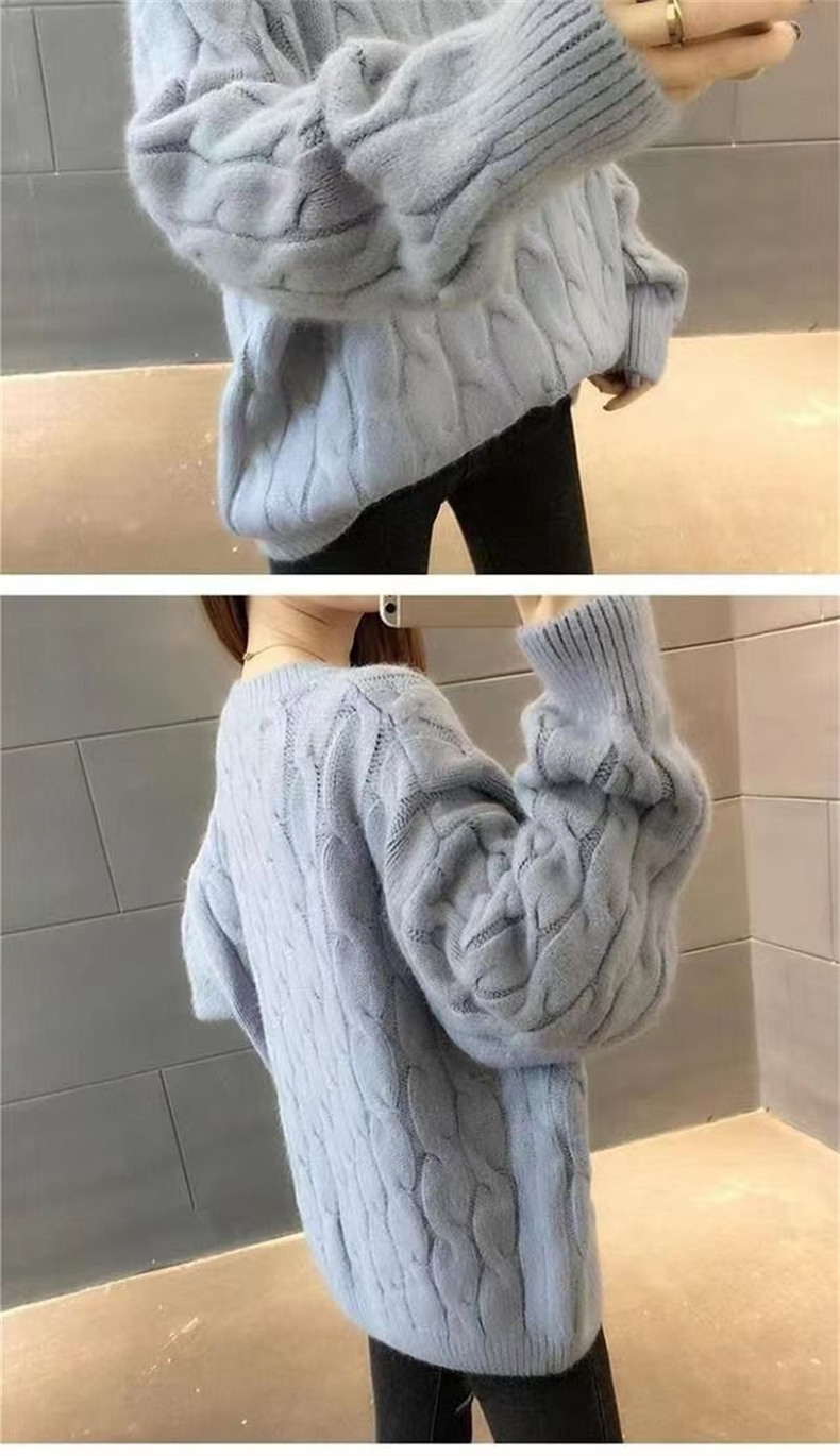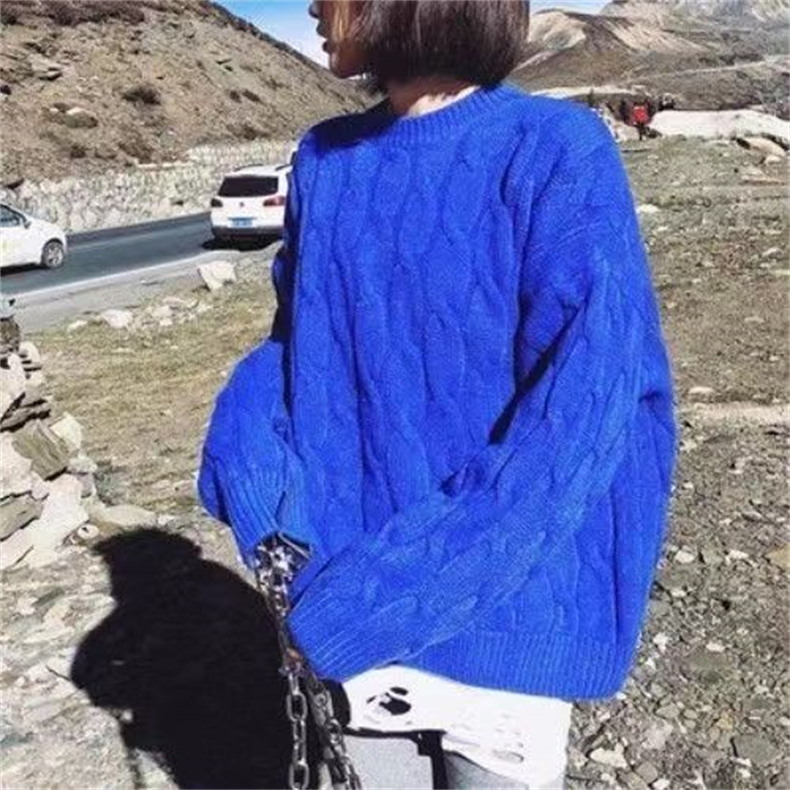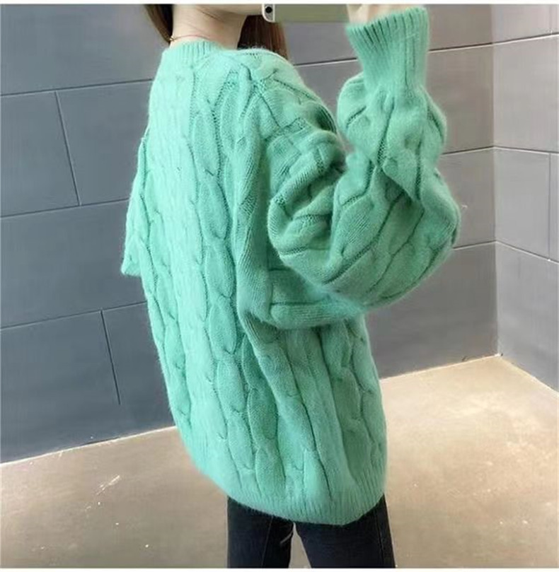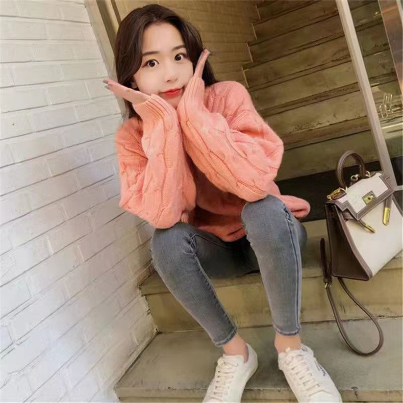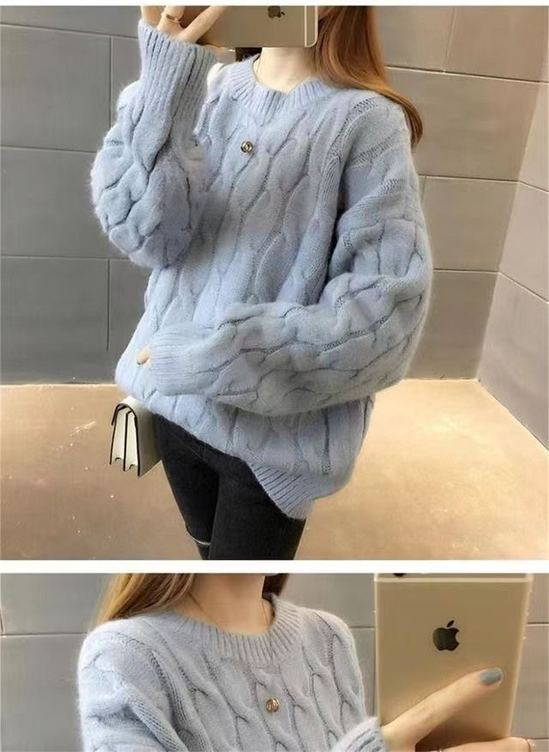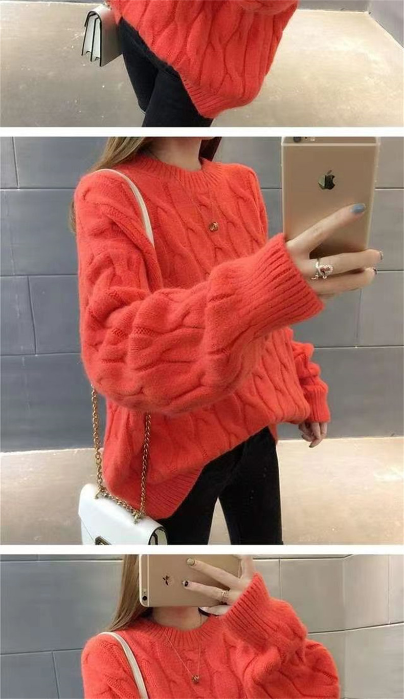 2024 겨울 여성 의류 짧은 유행 학생 코트 스웨터 여성의 느슨한 풀오버 두꺼운 둥근 목 트위스트 스웨터스토어 가기