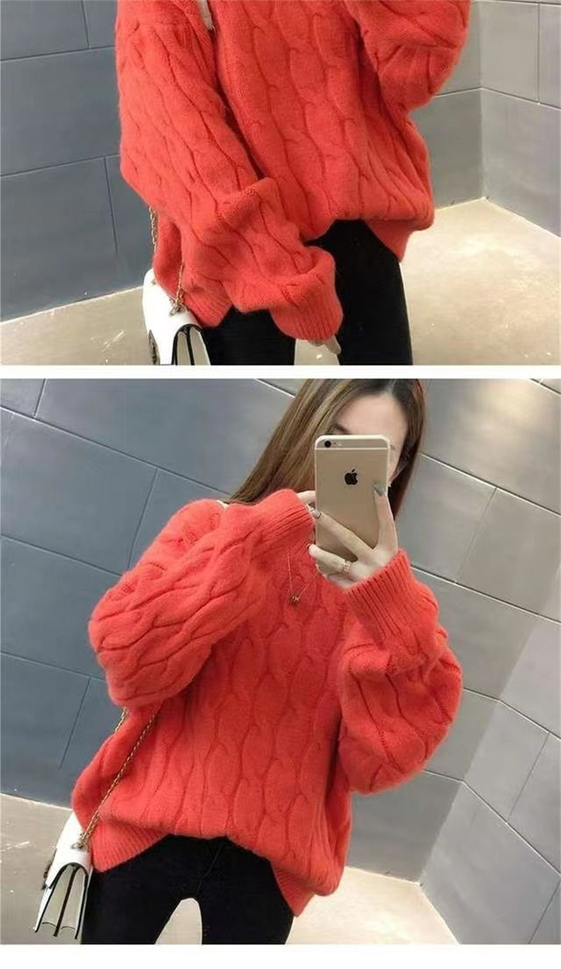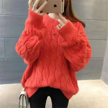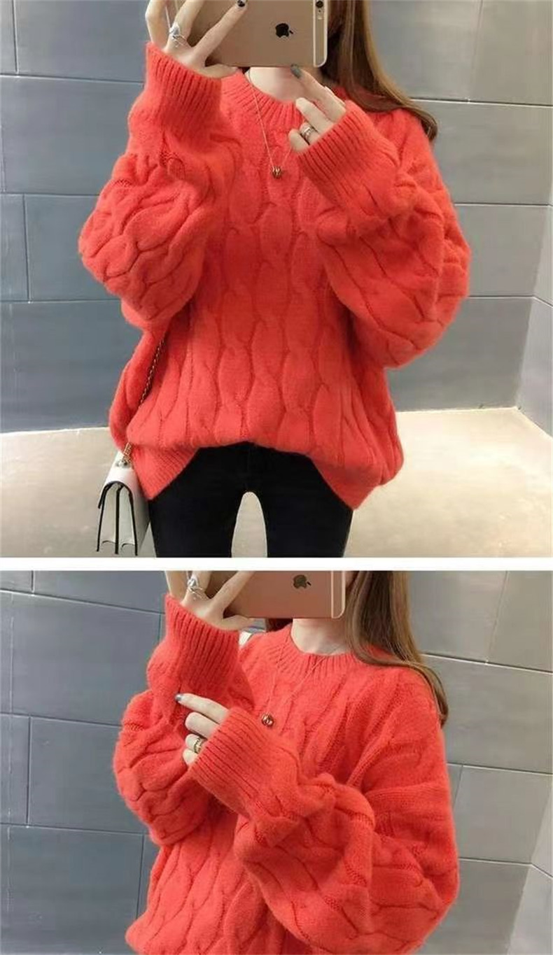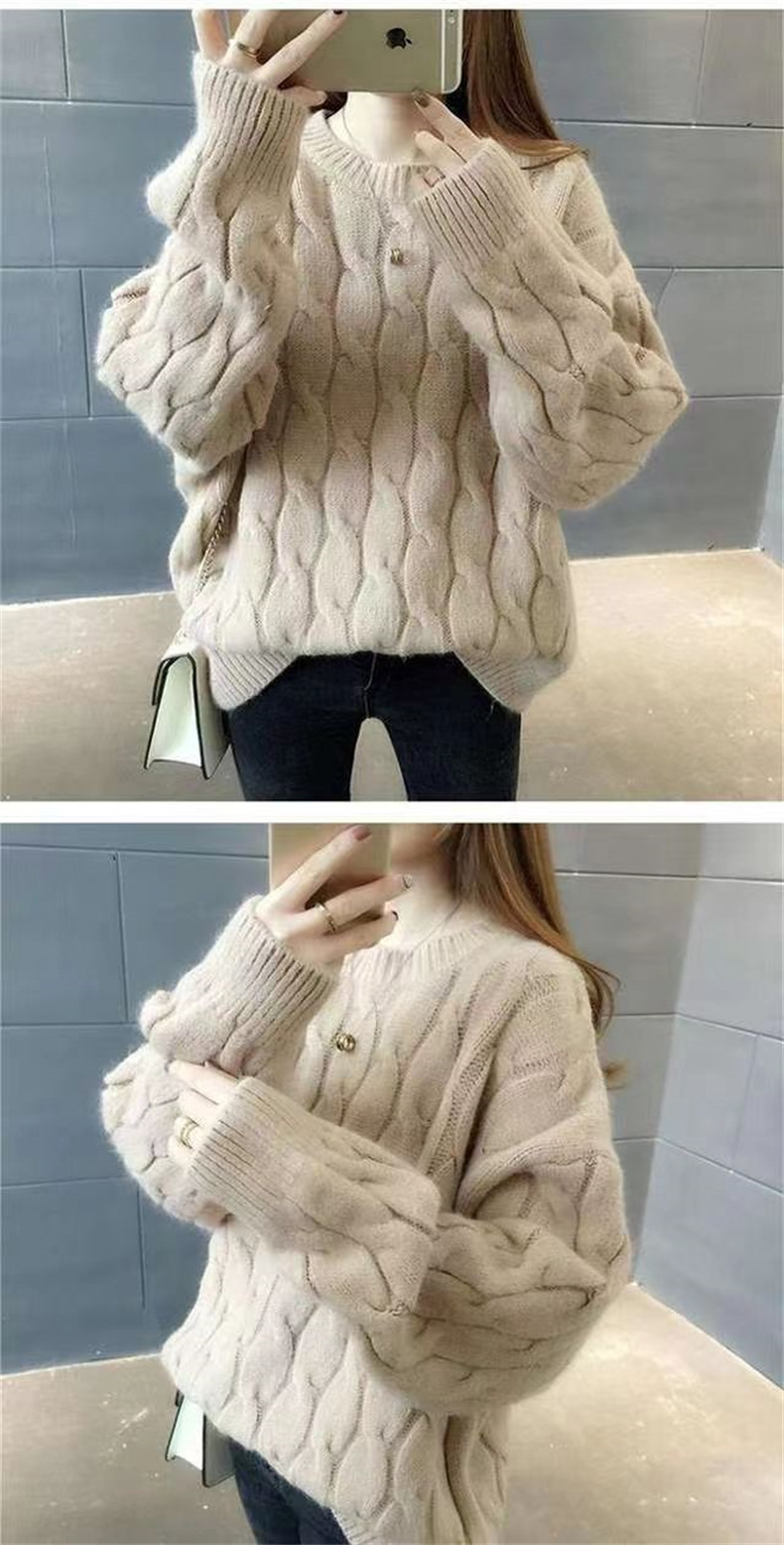 2024 겨울 여성 의류 짧은 유행 학생 코트 스웨터 여성의 느슨한 풀오버 두꺼운 둥근 목 트위스트 스웨터
