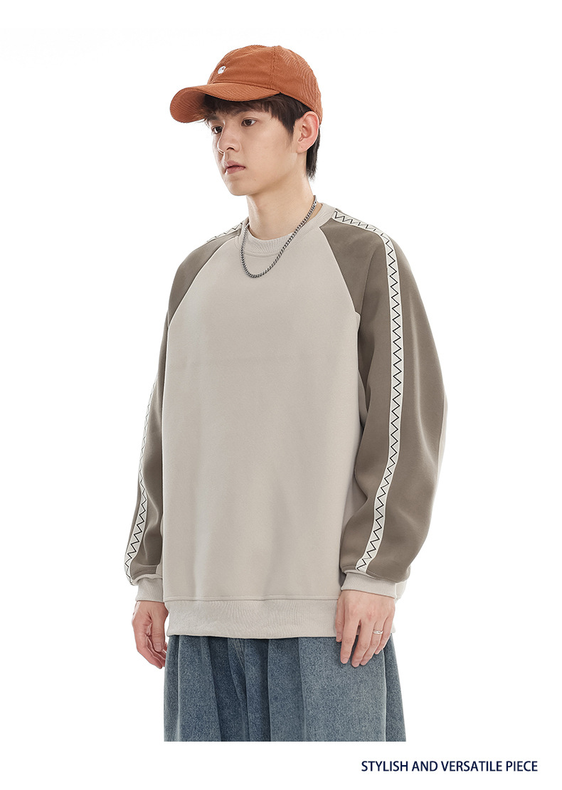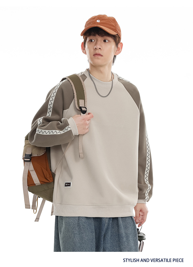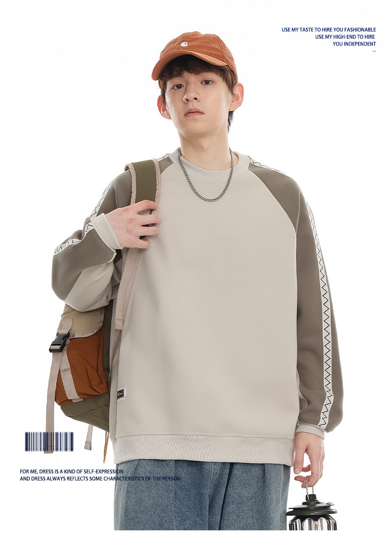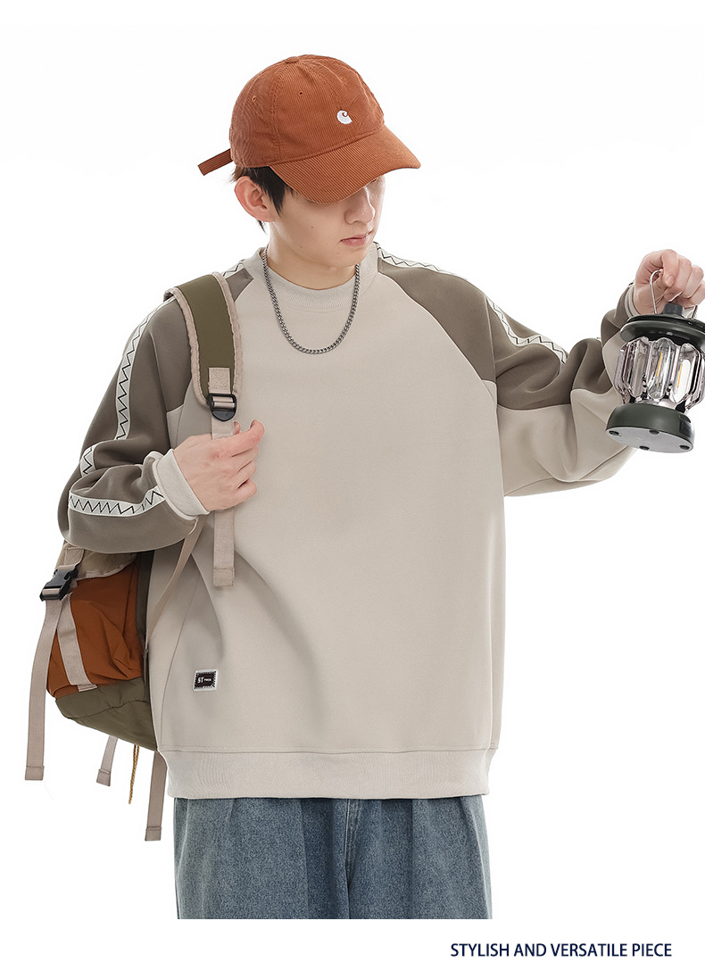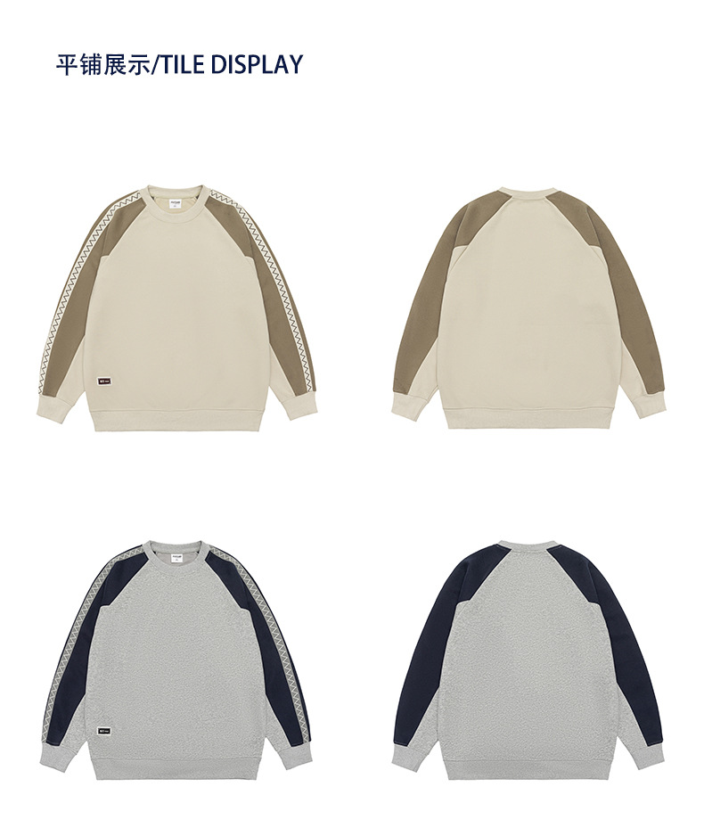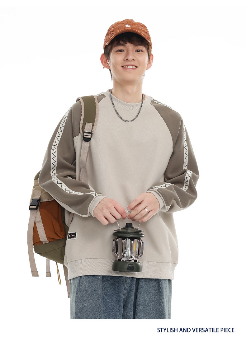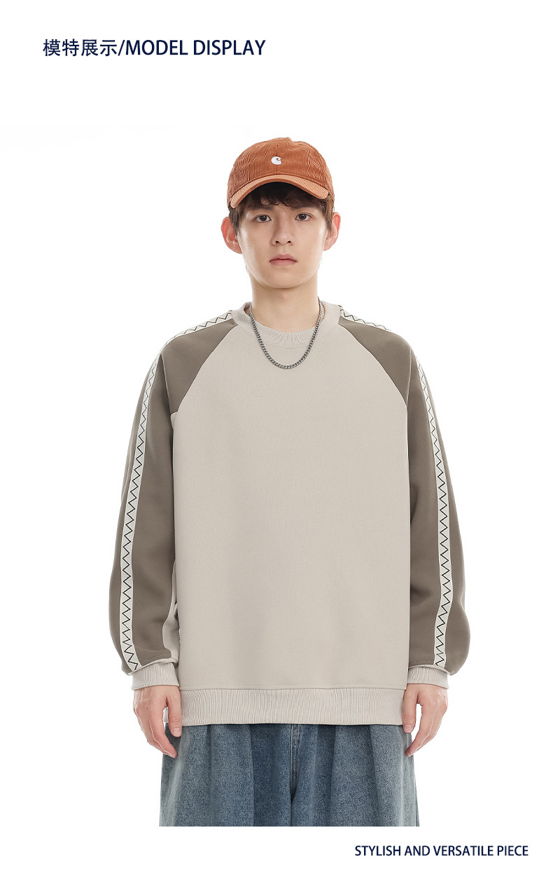 LKTM 남성 # 미국 레트로 라글란 슬리브 명암 컬러 크루 넥 스웨트 셔츠 남성 가을 겨울 느슨한 커플 캐주얼 자켓스토어 가기