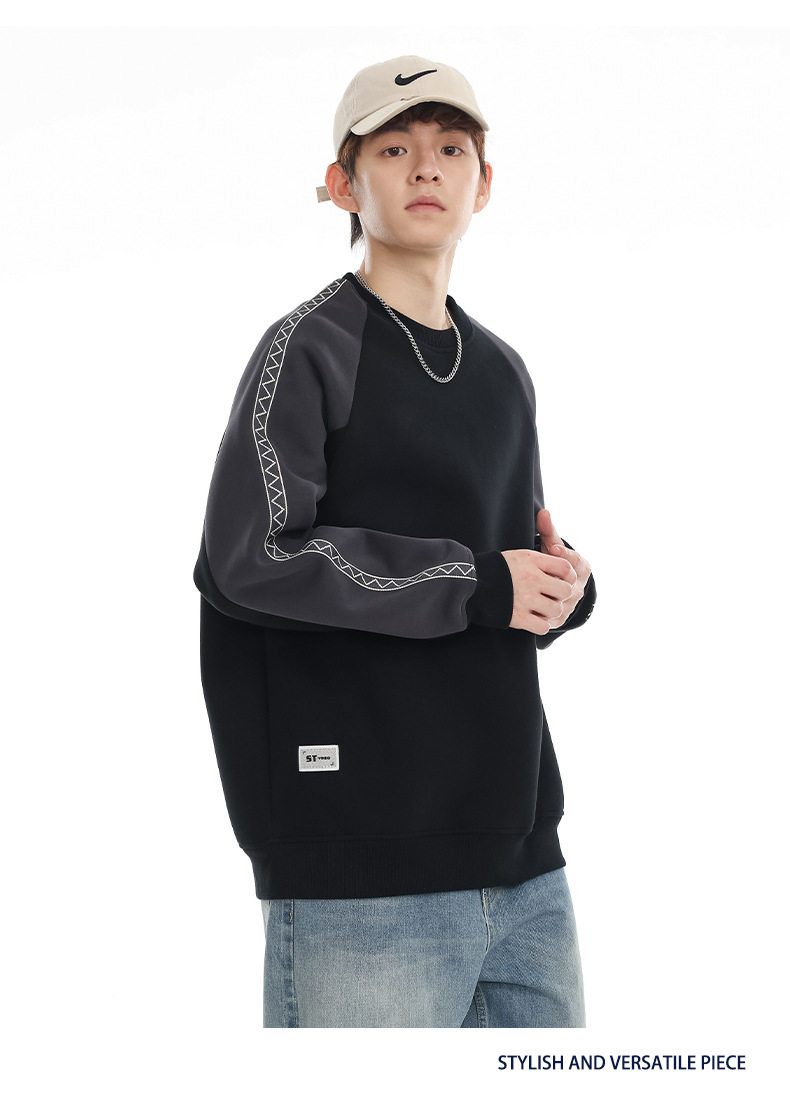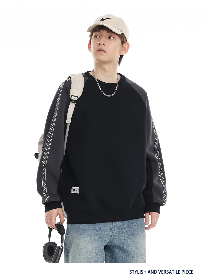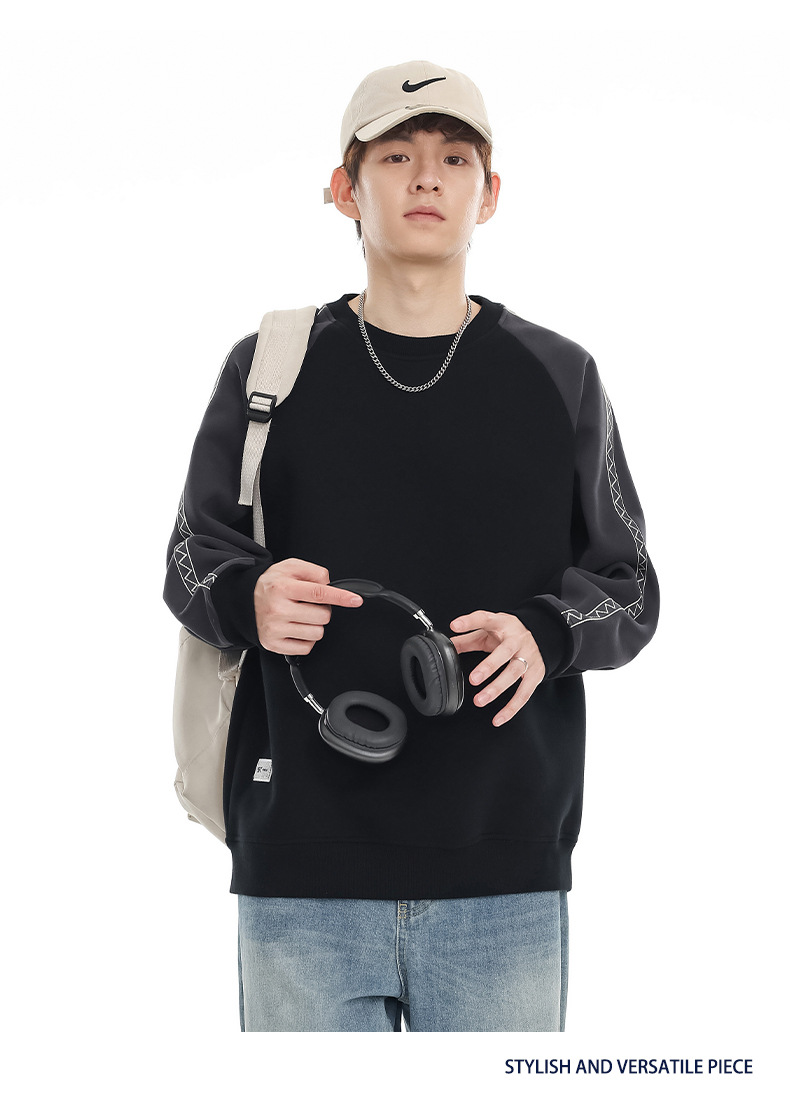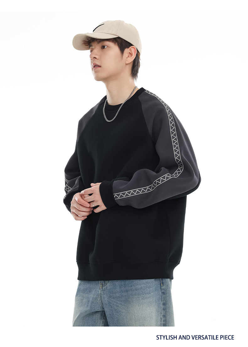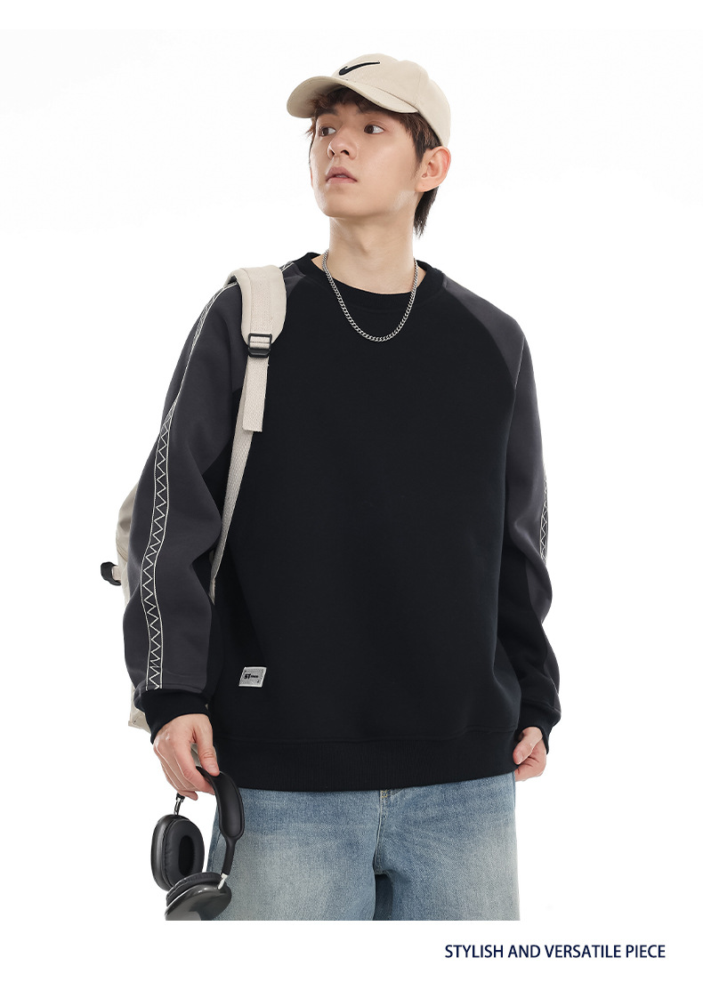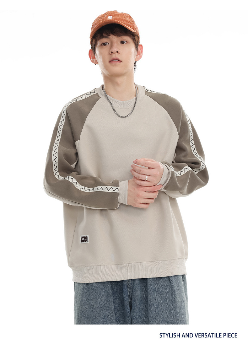 LKTM 남성 # 미국 레트로 라글란 슬리브 명암 컬러 크루 넥 스웨트 셔츠 남성 가을 겨울 느슨한 커플 캐주얼 자켓스토어 가기