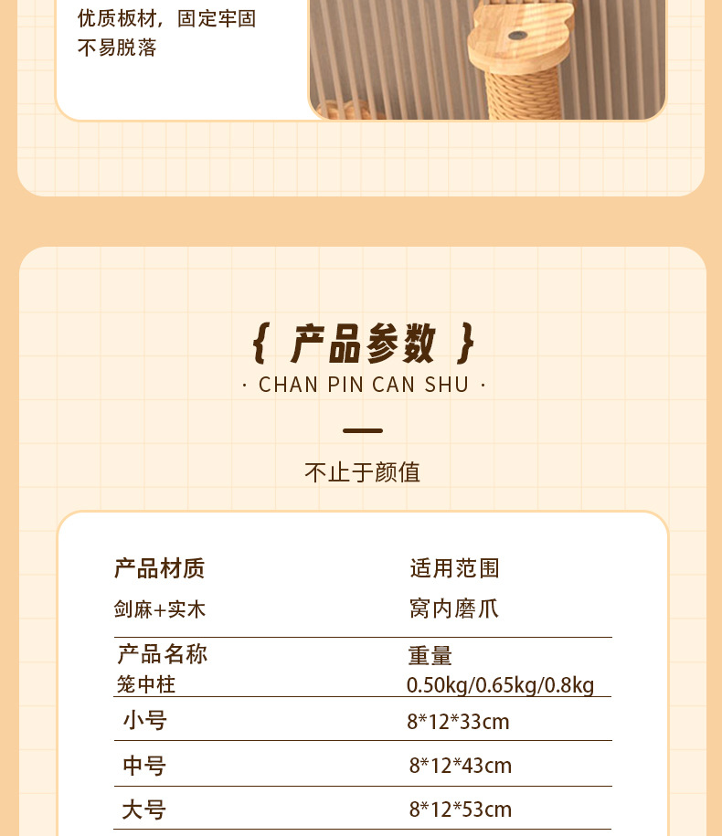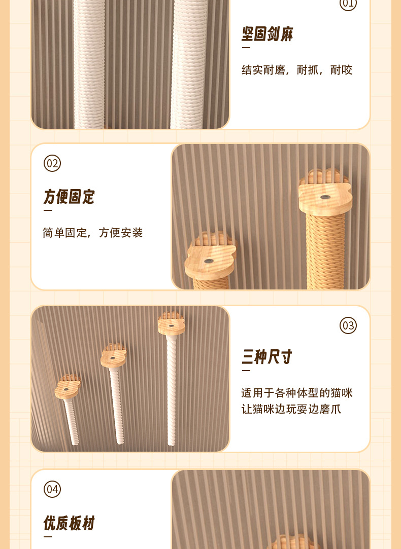 • 오리지널 컬러 대마줄 고양이 긁는 기둥 (50cm)
