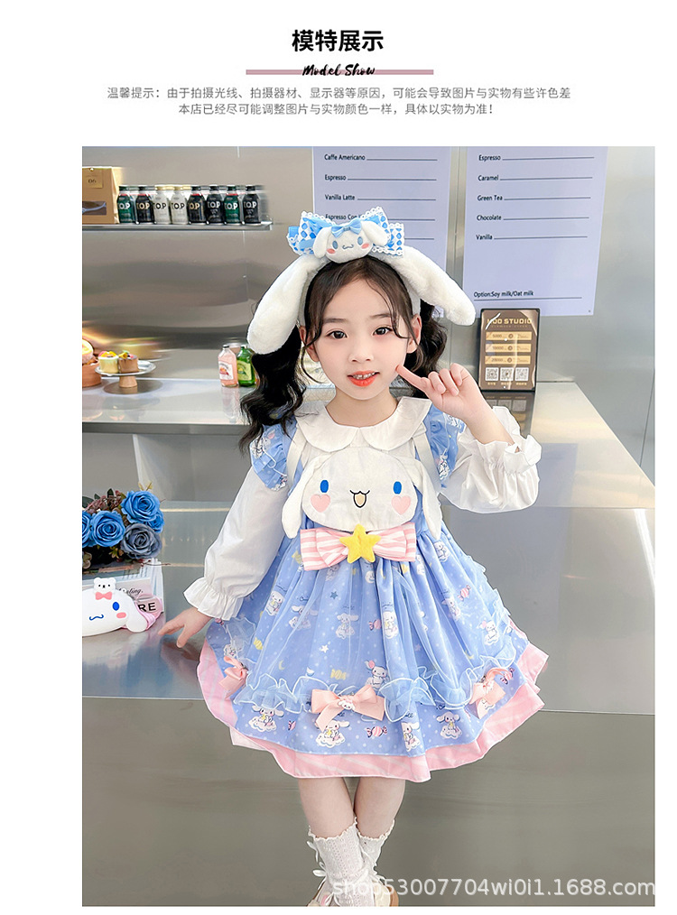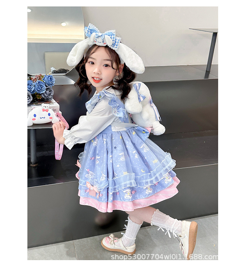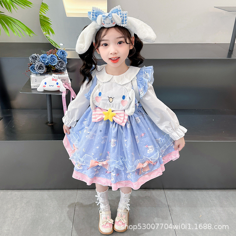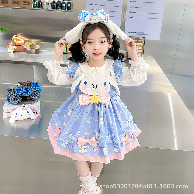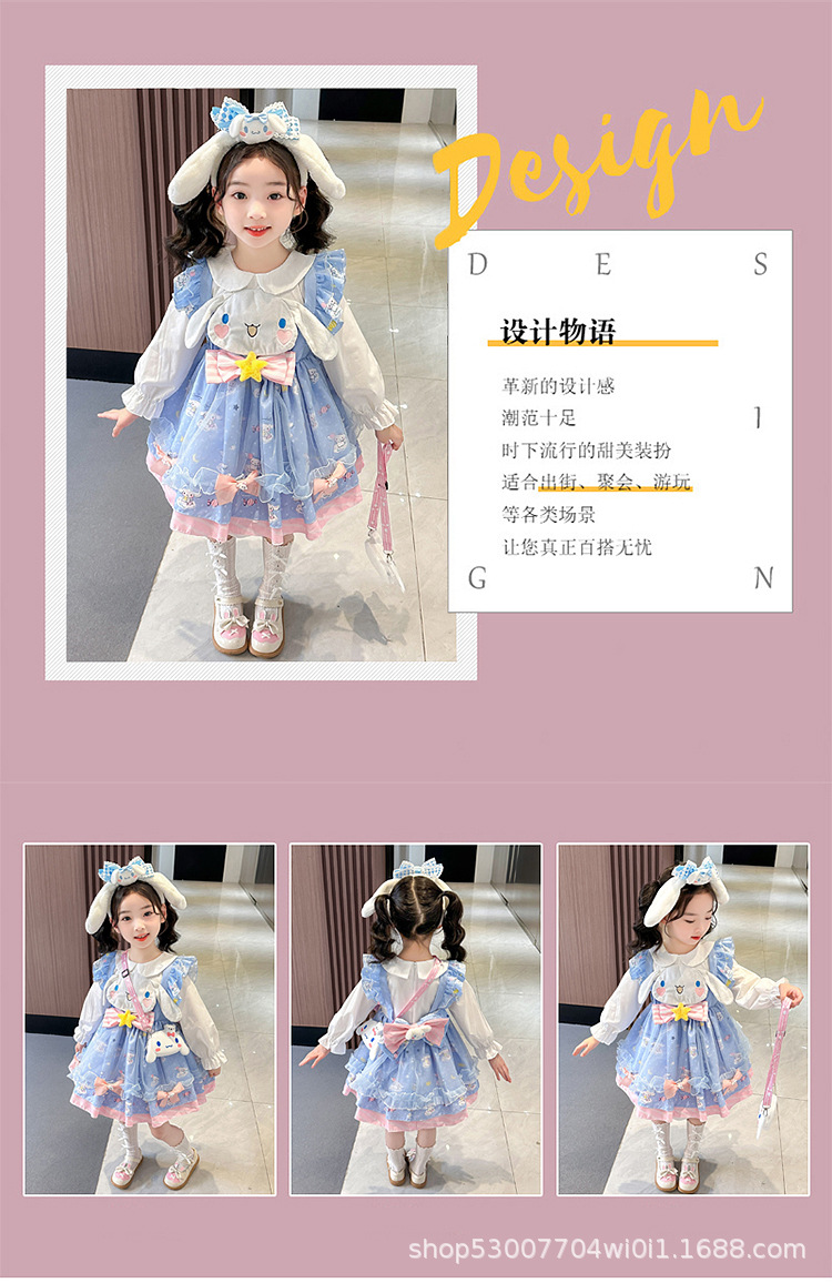 소녀 유구이 개 긴 소매 치마 원피스 2024 봄과 가을 새로운 아기 아이들 로리타스토어 가기