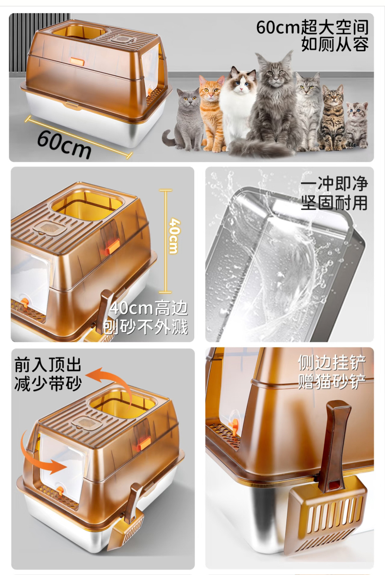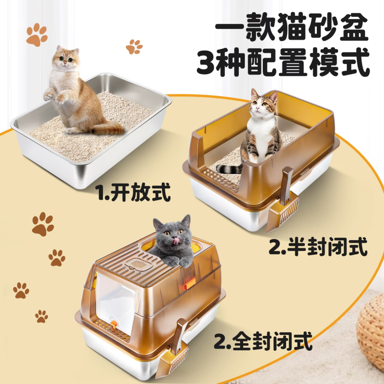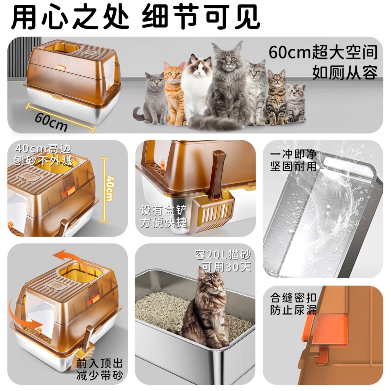 완전 밀폐 된 스테인레스 스틸 고양이 쓰레기 상자 대형 탈취제 대형 고양이 화장실 폐쇄 고양이 쓰레기 상자 애완 동물 용품 도매스토어 가기