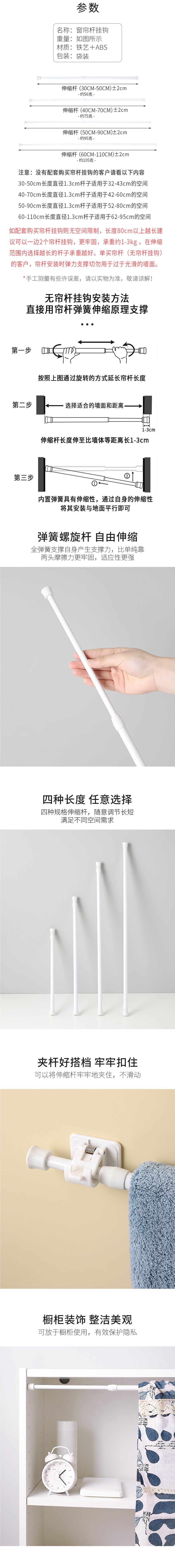 • 텔레스코픽 폴 연장 60-110cm + 흰색 커튼봉 후크 2개