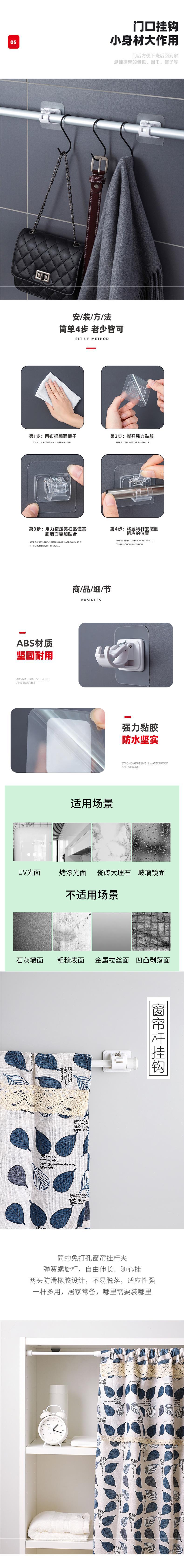 커튼로드 후크 커튼로드 클립 홀더 비 천공 접착 브래킷 클립 크로스바 도어 커튼 텔레스코픽 로드 도매