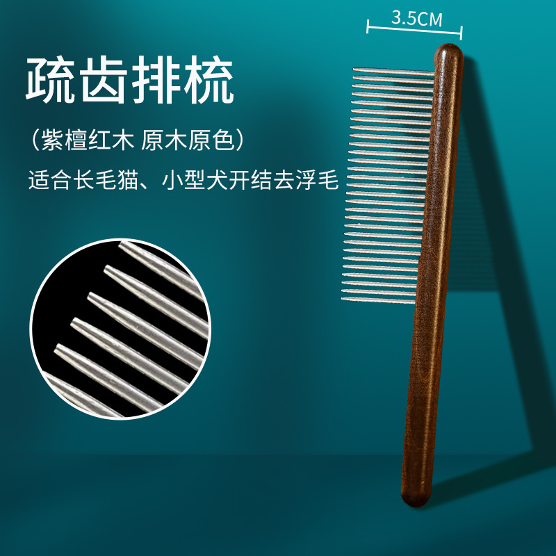 • 로즈우드 모델 - 희박한 빗 [매듭이 풀리고 매끄러운 털을 가진 장모 고양이와 소형견]