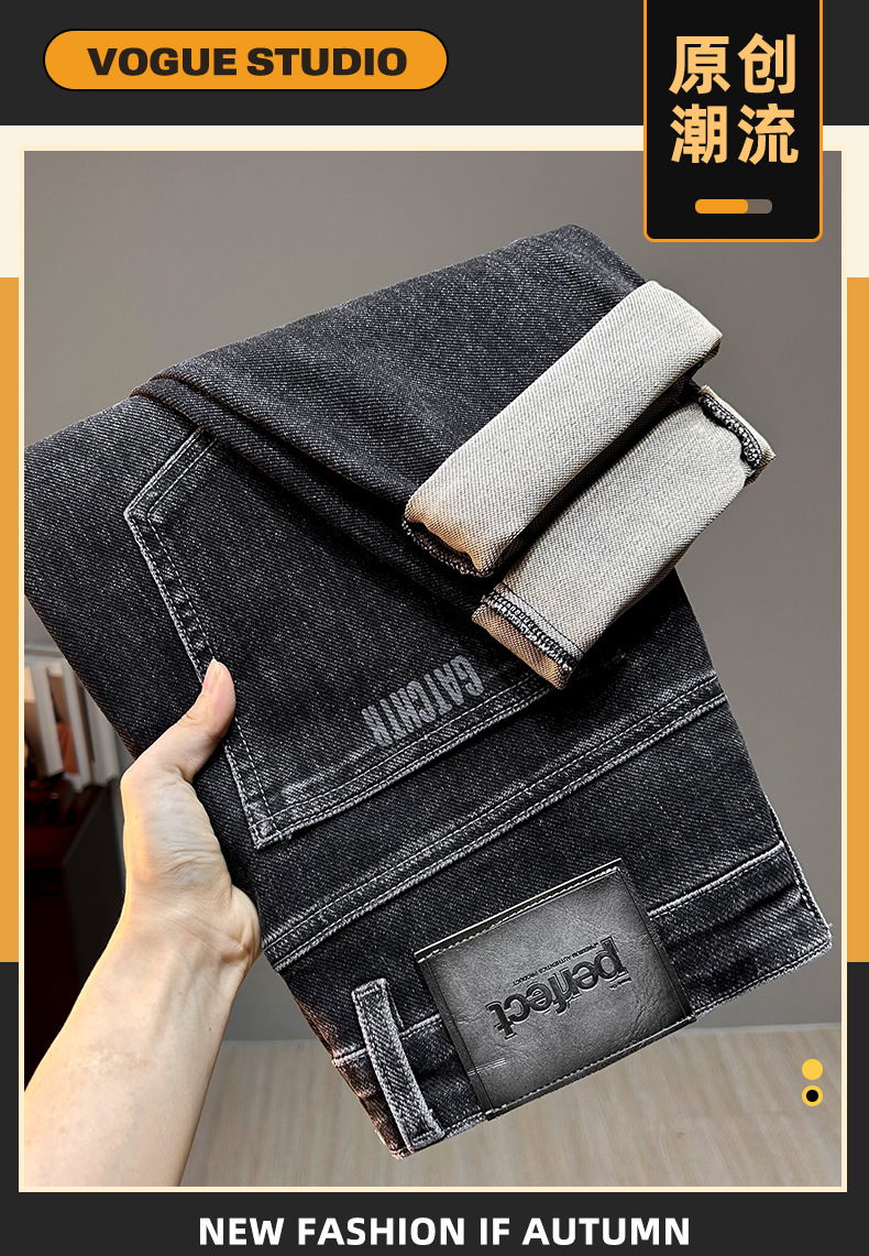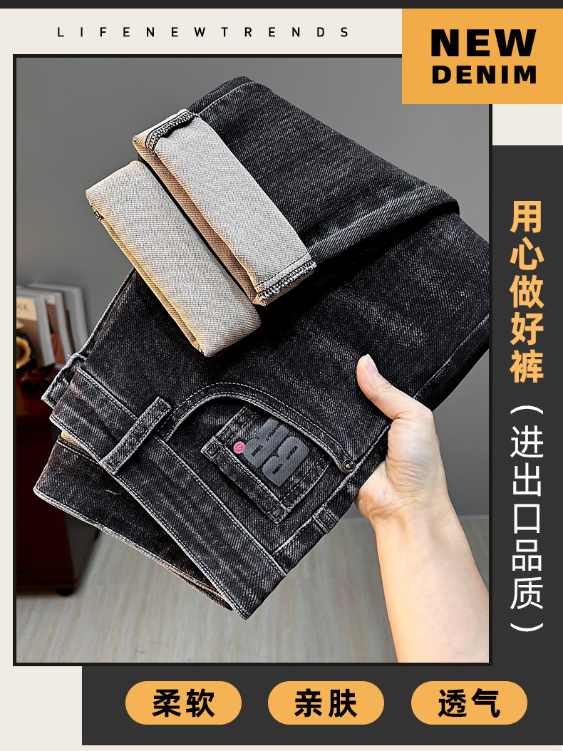 爆款黑色牛仔裤男士2025秋季潮牌宽松直筒长裤弹力百搭休闲裤子男