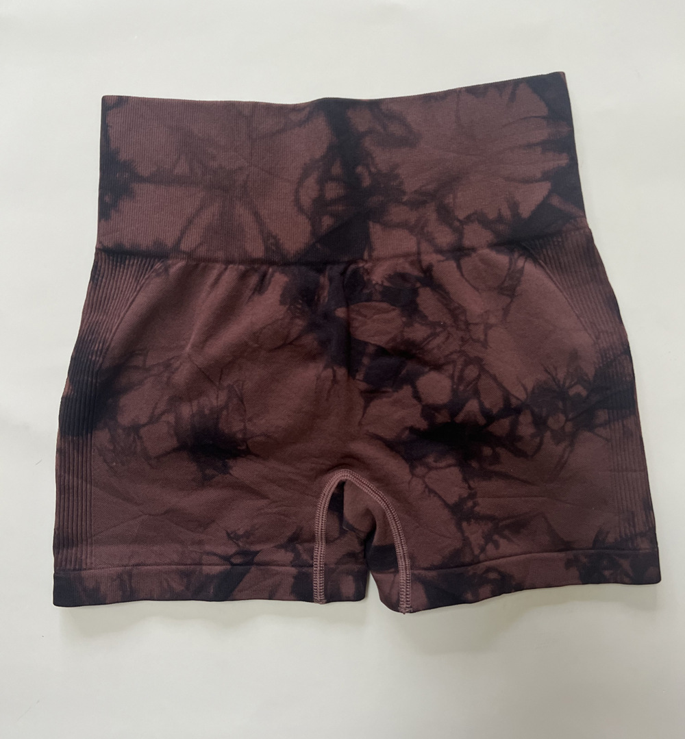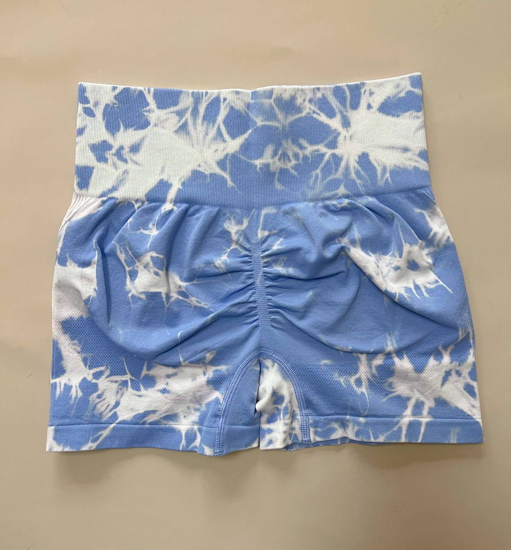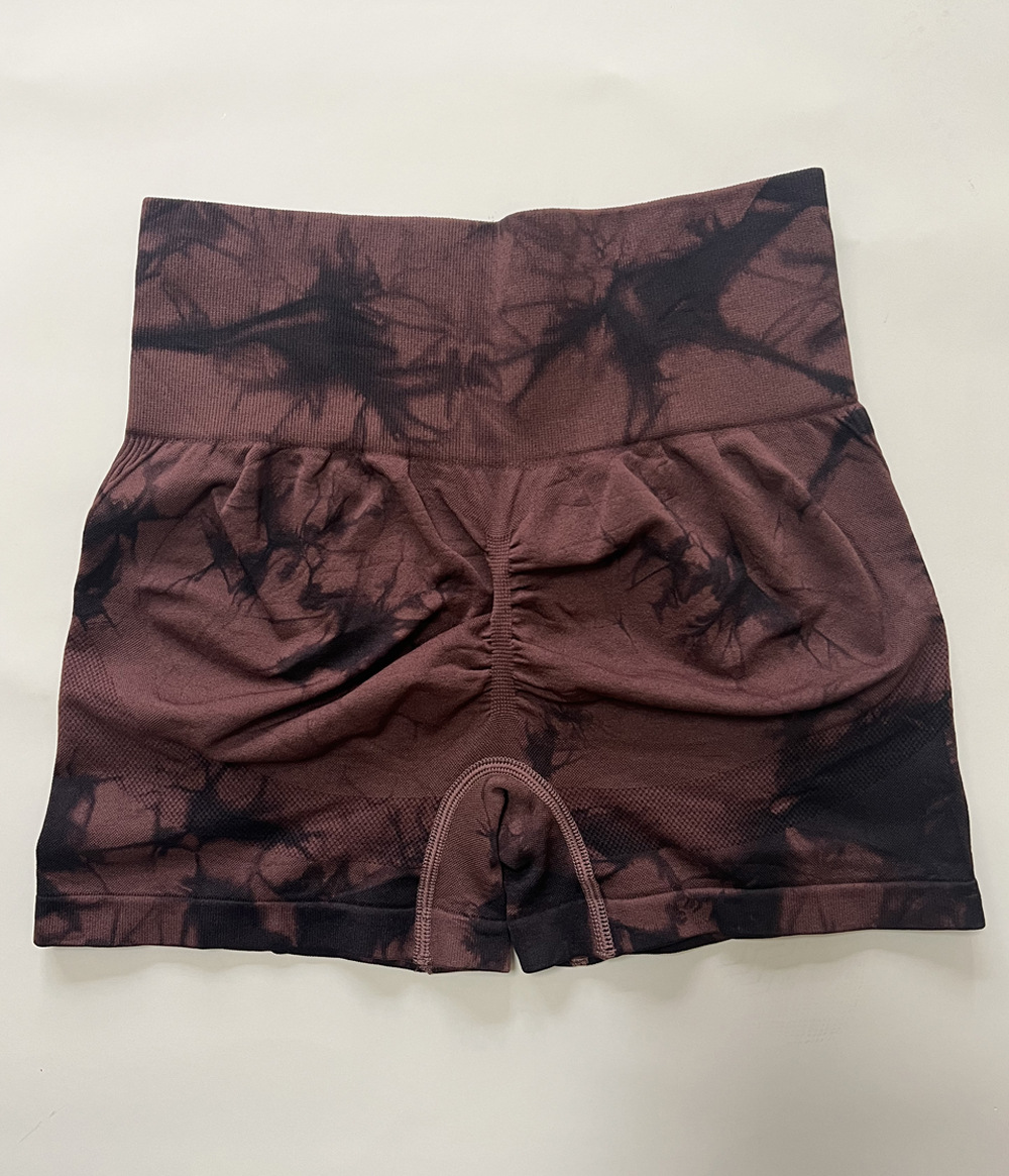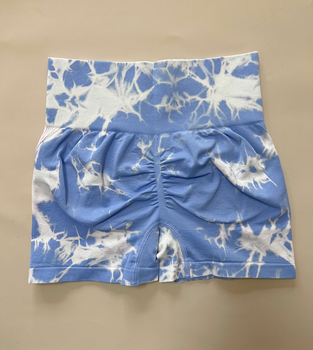 국경 간 복숭아 엉덩이 바지 높은 허리 단단한 배 꽉 섹시한 요가 피트니스 바지 원활한 넥타이 염색 스포츠 3 점 반바지