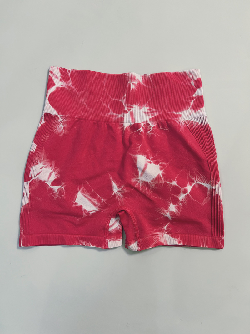 국경 간 복숭아 엉덩이 바지 높은 허리 단단한 배 꽉 섹시한 요가 피트니스 바지 원활한 넥타이 염색 스포츠 3 점 반바지스토어 가기