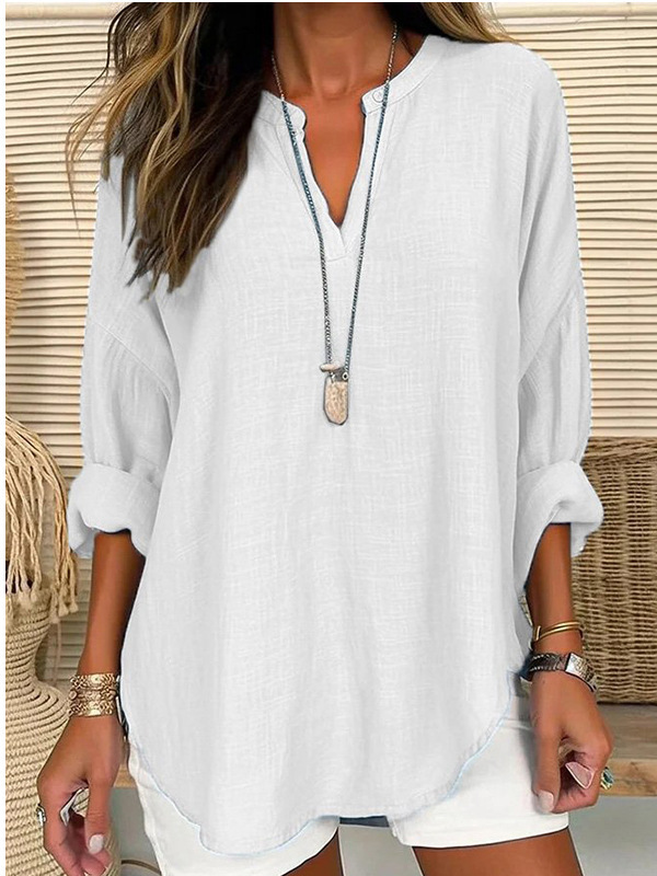 2024 국경을 넘는 대외 무역 이베이 유럽과 미국은 아마존 면화와 린넨 플러스 사이즈 셔츠 V 칼라 버튼 긴 소매 폭발을 기원합니다