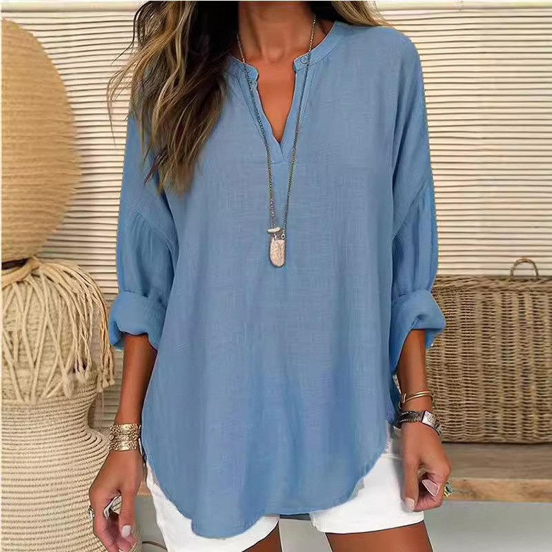 2024 국경을 넘는 대외 무역 이베이 유럽과 미국은 아마존 면화와 린넨 플러스 사이즈 셔츠 V 칼라 버튼 긴 소매 폭발을 기원합니다스토어 가기