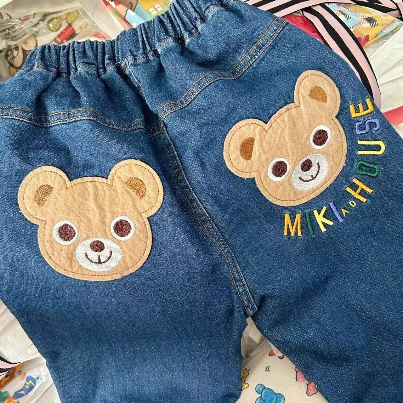 어린이 데님 바지 2024 가을 새 소년 바지 만화 곰 바지 조수 도매 머리카락스토어 가기