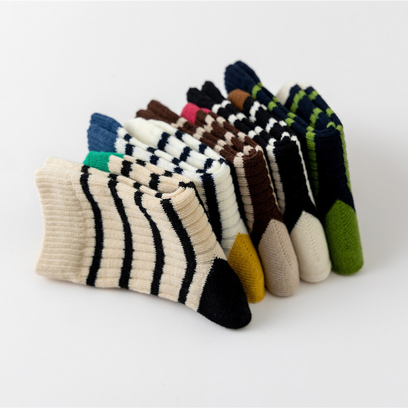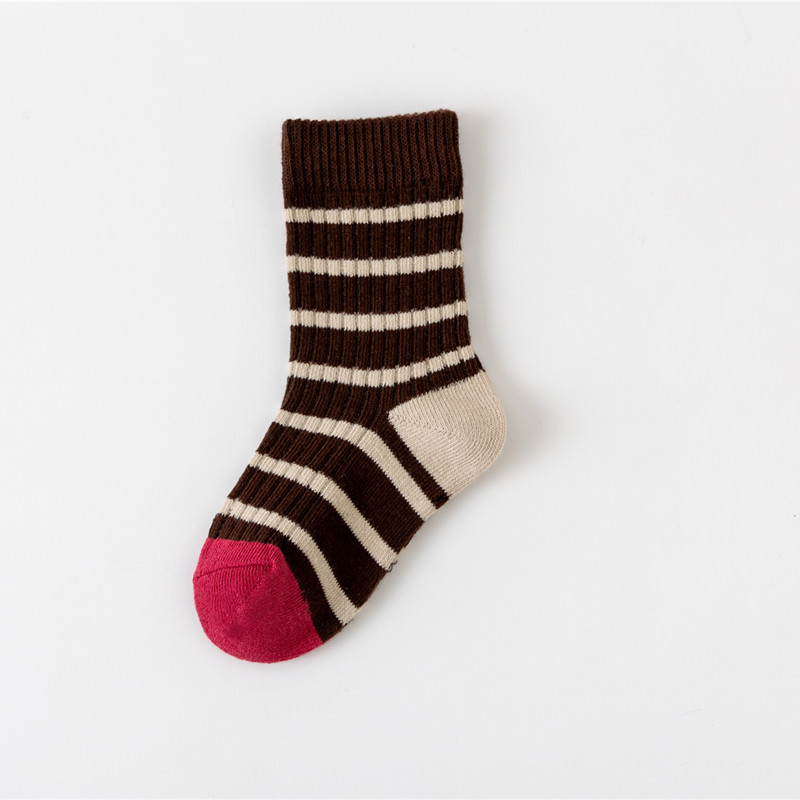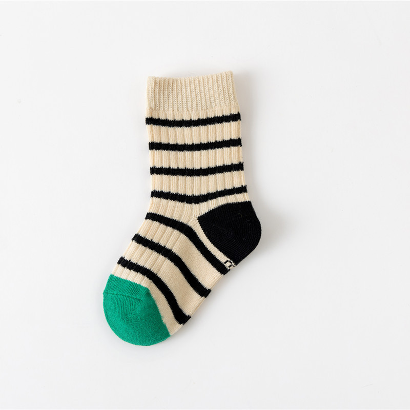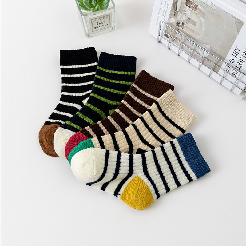 어린이 양말 가을과 겨울 새로운 색상 일치하는 수평 스트립 전송 링 튜브 양말 통기성 면 양말 소년과 소녀 아기 양말