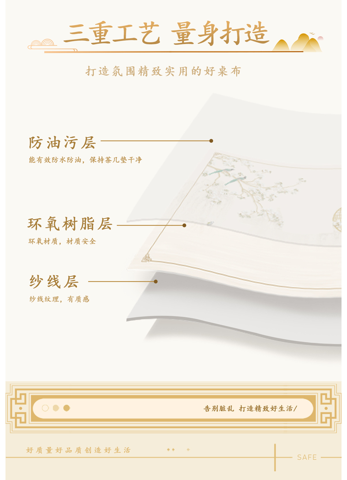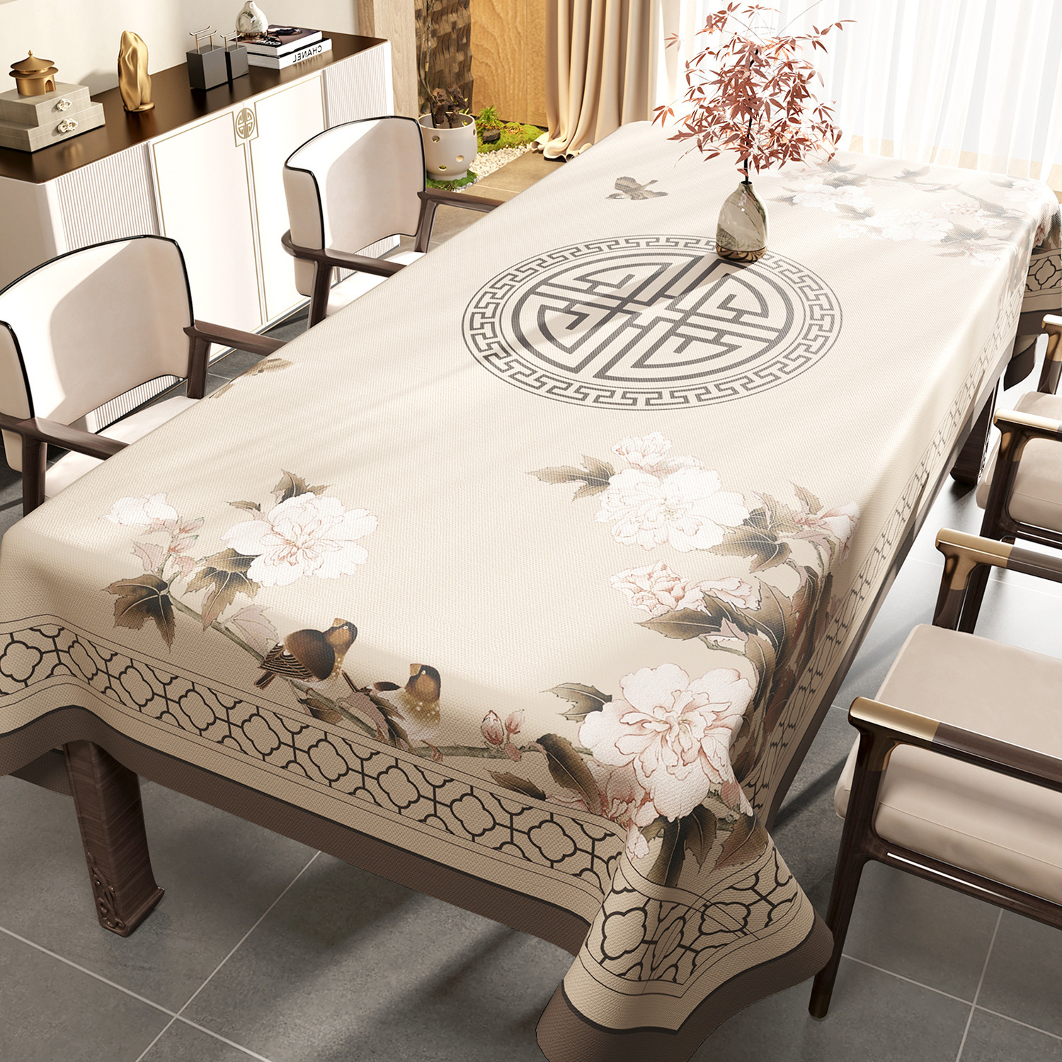 새로운 중국 스타일의 식탁보 오일-증거 방수 테이블 매트 라이트 럭셔리 높은 수준의 감각 PVC 테이블 매트 열 절연 식탁 커피 테이블 매트 테이블 매트스토어 가기