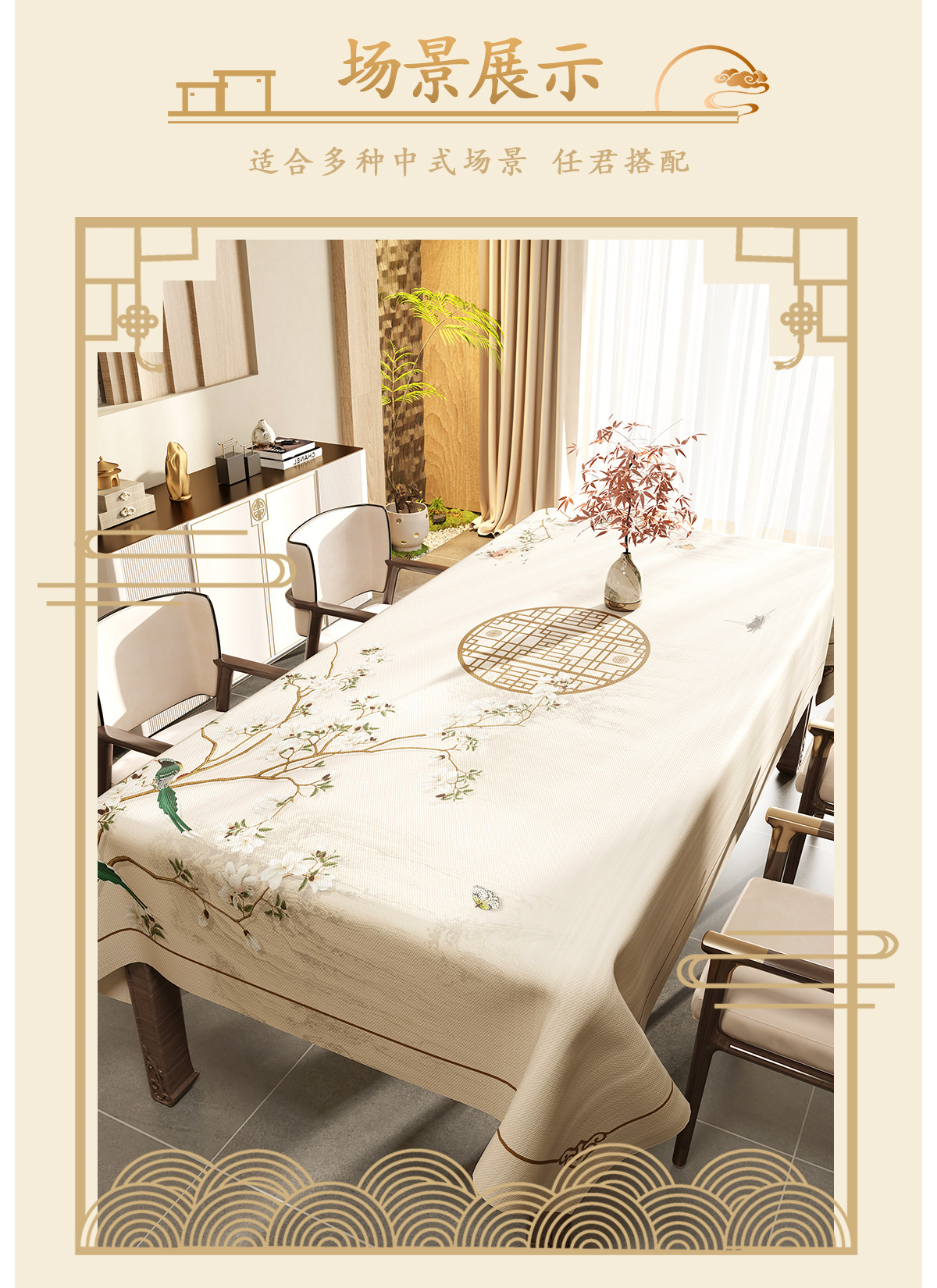 새로운 중국 스타일의 식탁보 오일-증거 방수 테이블 매트 라이트 럭셔리 높은 수준의 감각 PVC 테이블 매트 열 절연 식탁 커피 테이블 매트 테이블 매트