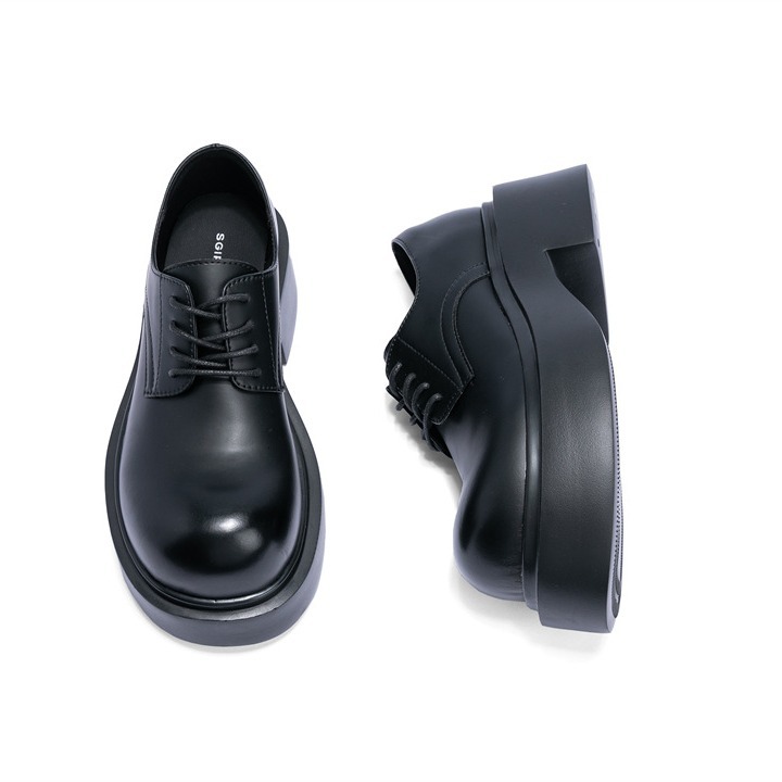 SGIRL TWTW2024 가을 새로운 영국 스타일 두꺼운 바닥 큰 머리 작은 가죽 신발 레이스 업 대학 스타일 높은 높이 신발
